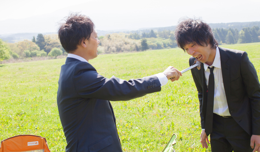 こちら、ラフ・コントロール・重岡さん(写真中央)のツッコミ。めちゃめちゃいい音が富士の裾野にこだましました.