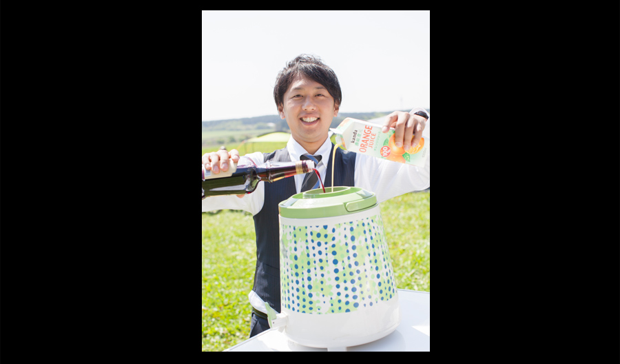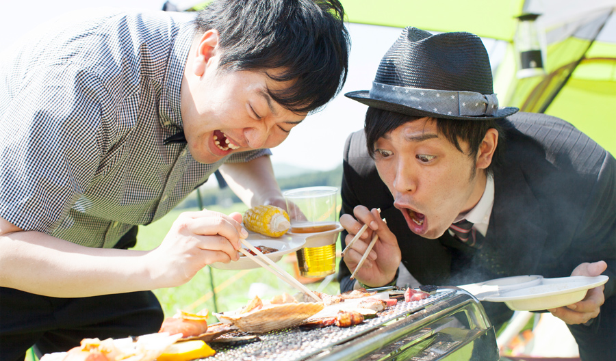 BBQと言えば、まずは、乾杯ですよね。写真はアームストロング・安村さん。