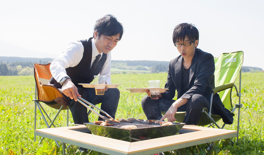 まずは、立食スタイルでBBQを。写真は、LOGOSの「EZCステンチューブラルプラスXL」。