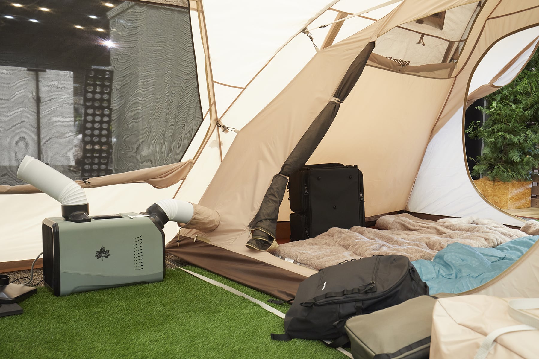 「いままでになかったまったく新しいアウトドアアイテムです。キャンプで使えるポータブルタイプのエアコンなんですけど、16℃から30℃まで幅広く温度設定が可能。16℃って家庭用エアコンよりもちょっと低めの設定ですよね。だから、かなり涼しいです。僕自身がめっちゃ暑がりなので、このアイテムさえあれば夏場でも快適にキャンプができるぞと。個人的に一番ほしいアイテムです」
