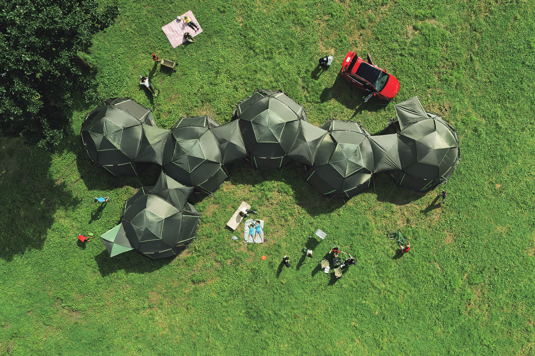 「世界的にもLINKといえばLOGOSと認知されているようなんですね。SNSなどでも〝デカゴン〟のLINK写真が『ユニークなシステム』と話題になっていたりもして。でも、3つのデカゴンをLINKさせて車も繋げようと思ったら、100万円以上かかってしまう。夢はあるけれど現実的にはFUNできる人が限られてしまいますよね。そこで、新製品の『neos コネクトベースシリーズ』では、リアリティのある価格帯にこだわりました。主要アイテムの『neos コネクトベース・ヘキサドーム 600-BF』を6万円台でのリリースを予定していますし、新たに購入しなくてもお手持ちのテントともLINKできるようなアイデアもプラスしています」