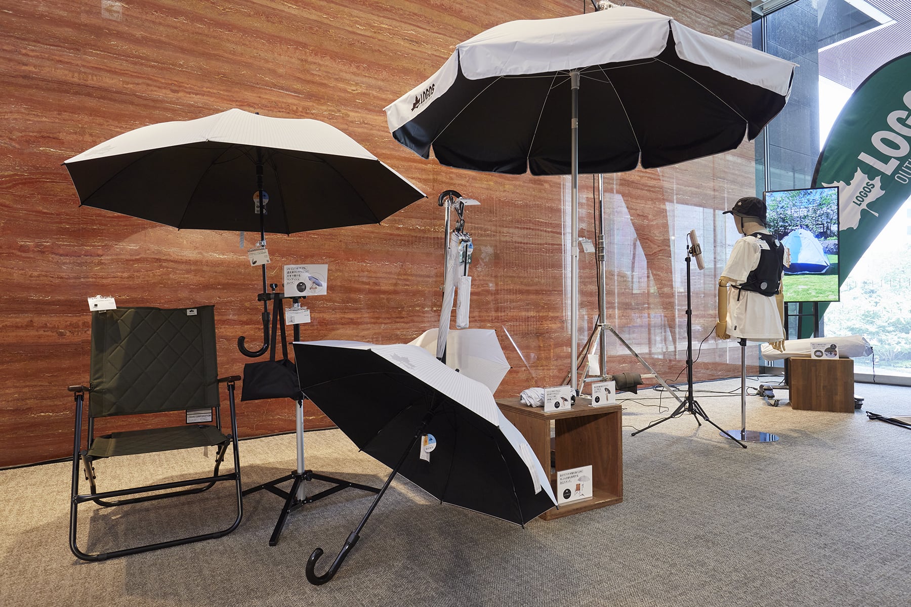 「展示会場に北海道・釧路の方が来てくださったんですけど、現地の気温が37℃とおっしゃっていました。ちょっと異常な暑さですよね。そんな暑さ対策にLOGOSだからこそできることがあると感じています。〝モノを冷やす〟〝人を冷やす〟〝UV-CUT&遮熱〟の3本柱で、このジャンルにもこだわっていこうと。だって、せっかくアウトドアで楽しもうと思っても暑すぎたらFUNじゃないですから。そう考えると、やっぱり原点回帰ですよね。LOGOSの合言葉のひとつに〝玄関から一歩でも外に出たらアウトドア〟があるんですけど、アウトドア=ドア1枚の外と直訳できます。アウトドアの入口のハードルをさげて、もっと、もっと、ユーザーの方にFUNしてもらえるよう、僕たち自身が楽しんでいこうと思っています」