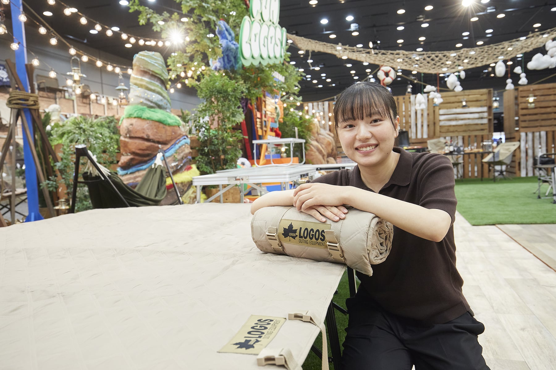 「店舗研修で接客させてもらっていたんですけど、この新製品のベースとなった『neos ファミリースムースリクライナー(サイドトレープラス)』を買ってくださるお客様が多くて。キャンプだけじゃなくて、庭やベランダでの使用を考えていらっしゃったんですね。ターゲットが幅広いという意味で、LOGOSらしいアイテムだなぁって」