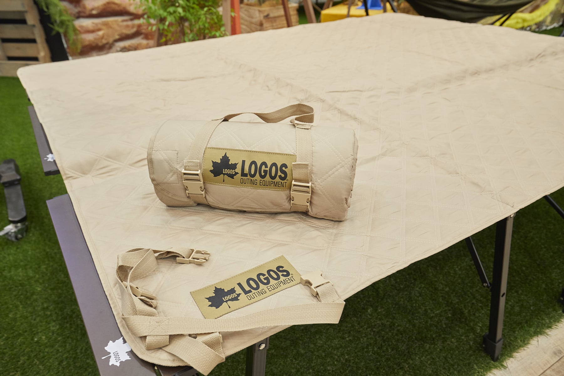 「LOGOSでは、毎年展示会前に社内向けの新製品説明会があるんですね。その時からこのアイテムが気になって仕方なかったんですけど、ピクニックに行って、レジャーシートが飛んじゃうのって、かなりのストレスですよね? ところが、このアイテムの4辺にはちょうどいい重さのウエイトがちょうどいい間隔で入っているので、製品名どおりに〝風で飛ばない〟レジャーシートなんです」