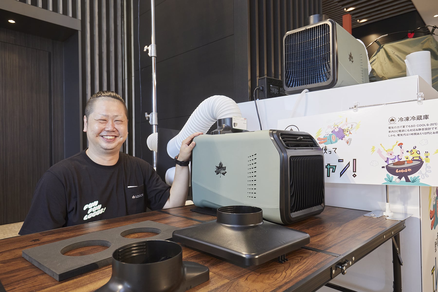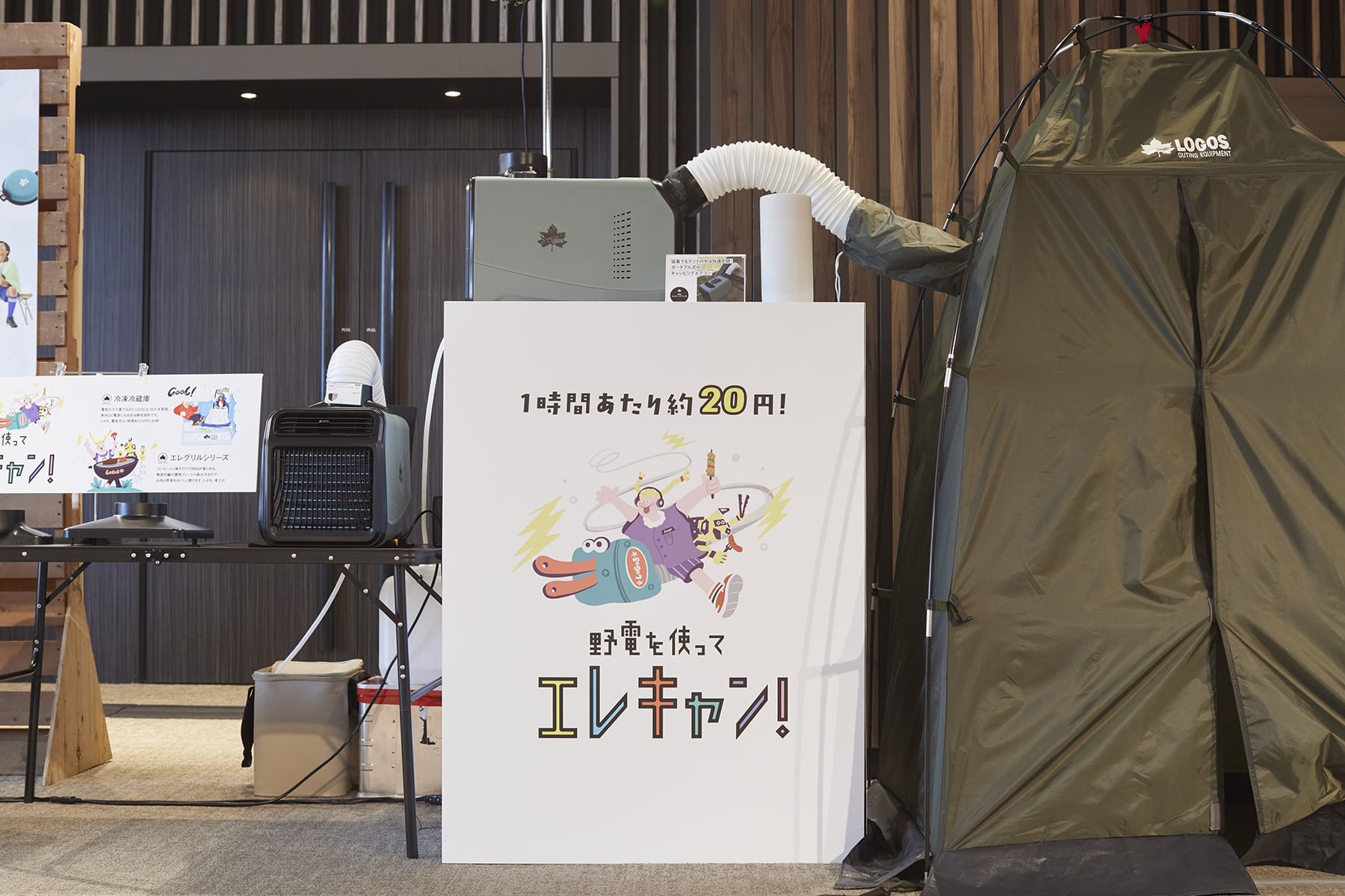 「そうなんです。LOGOSは、家電に対しての野電というアウトドアユースの電気製品の開発にもこだわってきました。そうこうしているうちに、急速に電化の時代になってきて、トヨタ自動車さんも20車種以上で給電が可能となり、全体の約42%を超えるキャンプ場でAC電源が設置されるようにもなった。そこで、エレキャン。LOGOSの野電を使ってアウトドアを楽しんでもらえたらとシリーズ化しました。元々、評価の高かった〝エレグリル〟にも新製品が登場しますし、16℃まで冷やすことができるポータブルタイプのエアコンにもご期待ください」