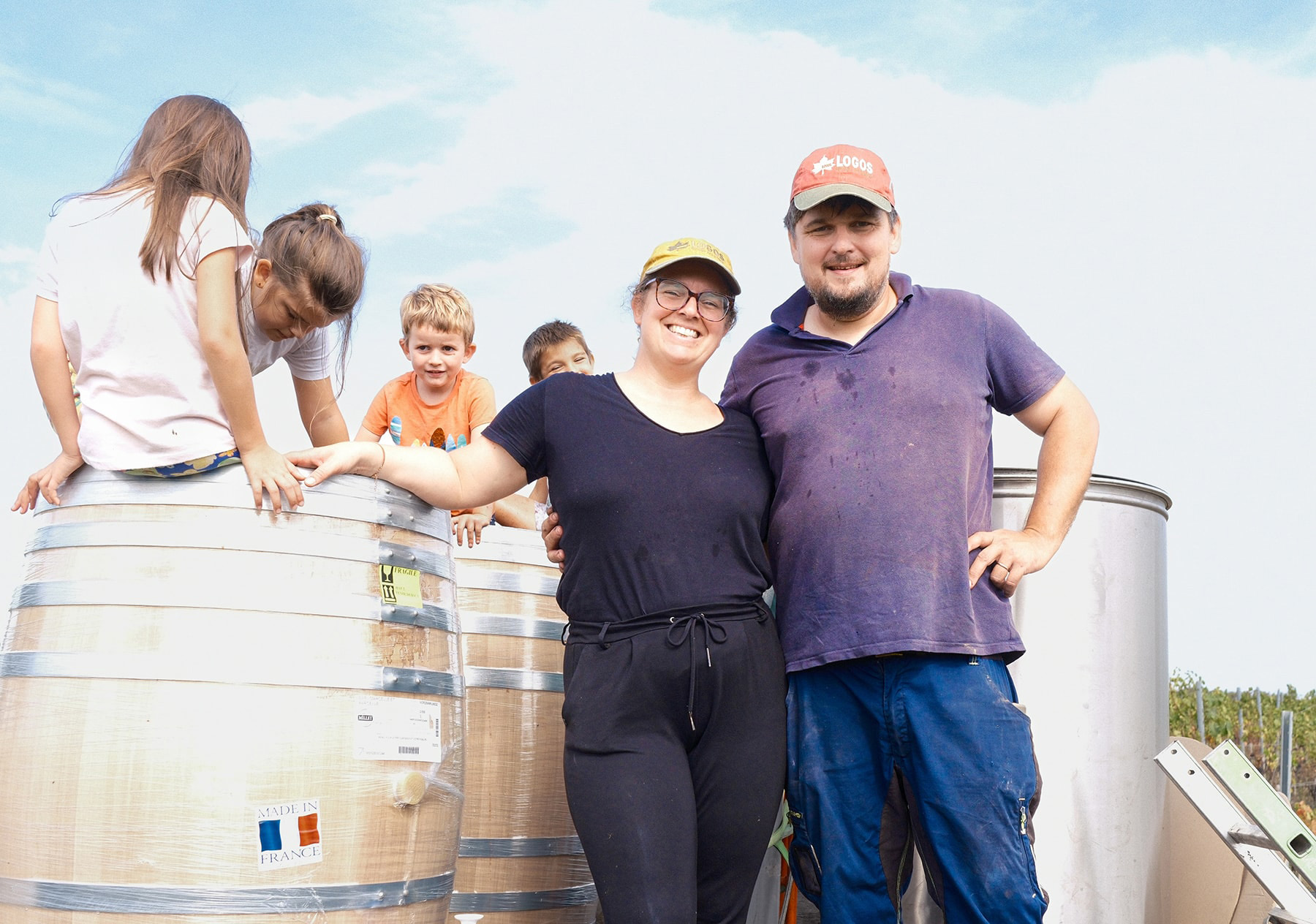 ワイン造りも人生も愛と情熱とユーモアを! ノエミ& エウェン・タヌー夫妻。お土産の「LOGOS CAP」がお似合いです。