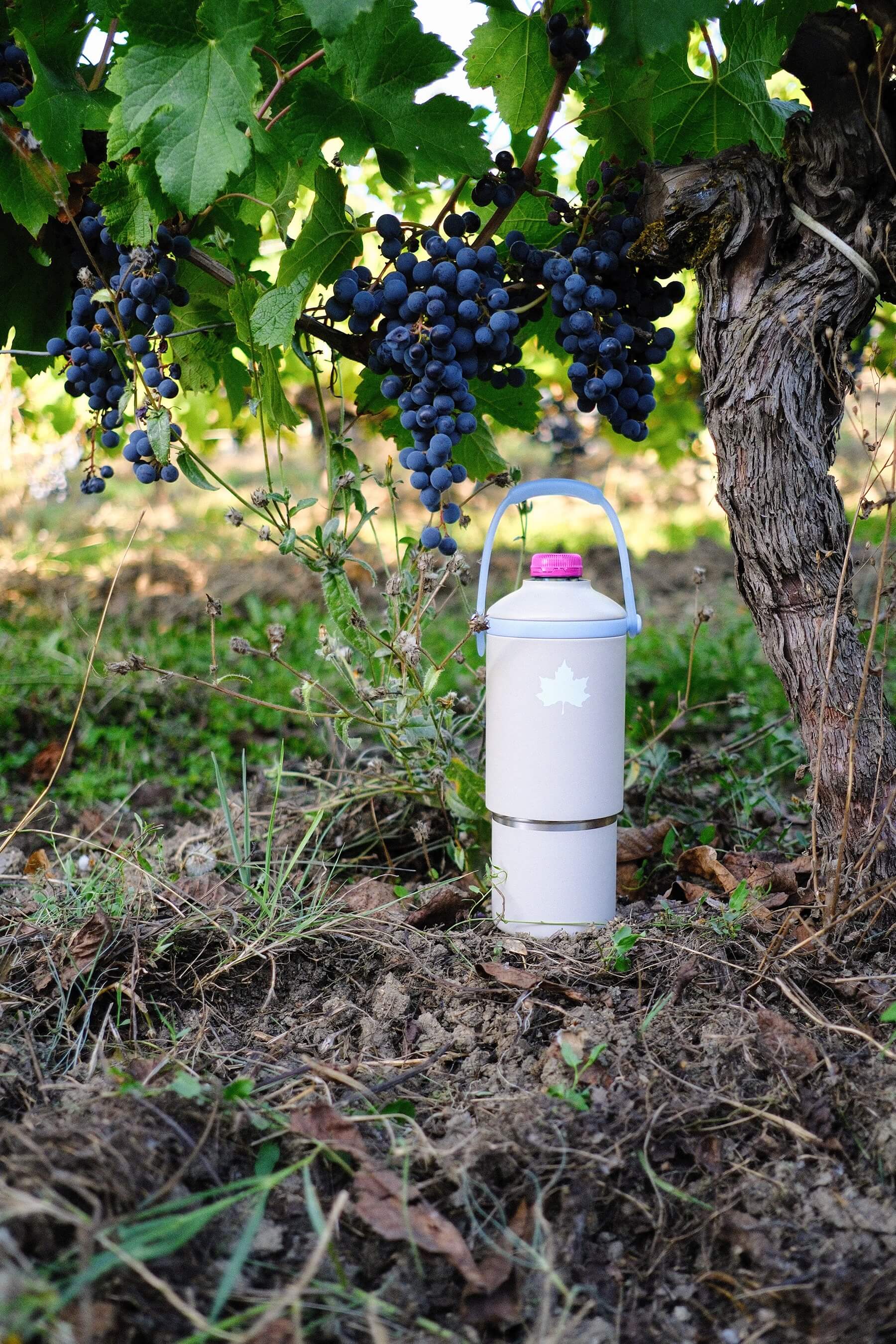 私もLOGOSの「真空「温・冷」ペットボトルシリンダー」(※写真の新色は2026年1月発売予定)で水分補給しながら収穫を満喫しました。