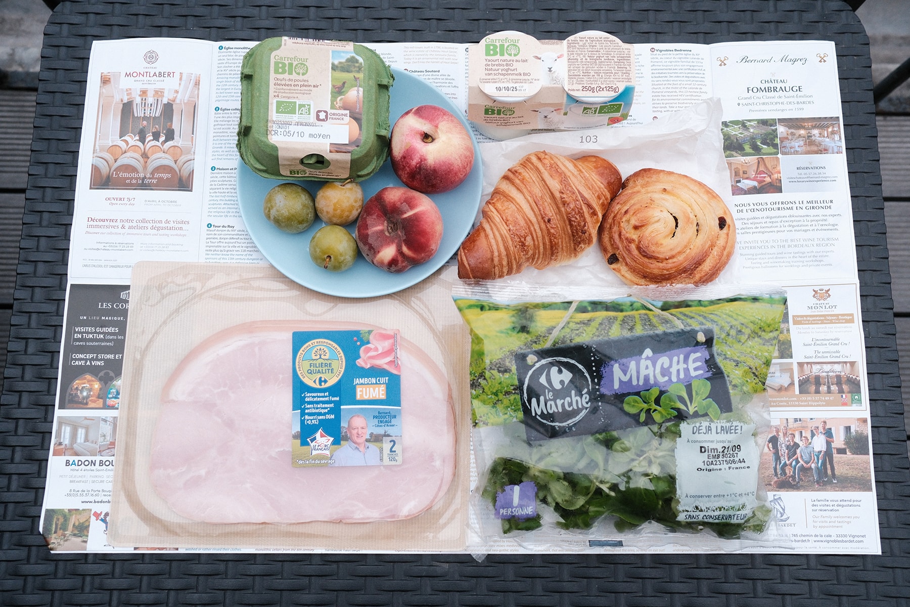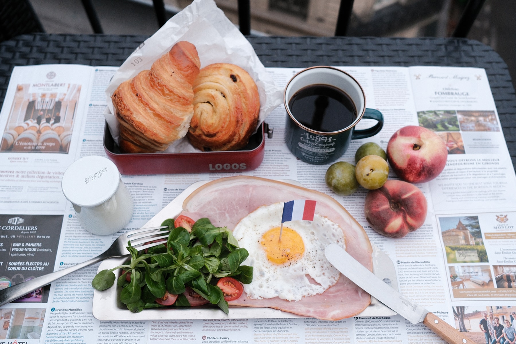 地元スーパーで買い物と朝7時開店のパン屋さんの焼きたてクロワッサンでプティ・デジュネ(朝食)!! テラスでパリの朝を感じながら優雅にと目論みましたが、ペッシュプラ(平べったい桃、日本では蟠桃)の甘い香りにブンブンと蜂がやって来るではありませんか……。パリでは生物多様性を守るために養蜂や公園内の農薬禁止を取り組んでいるのだそう。