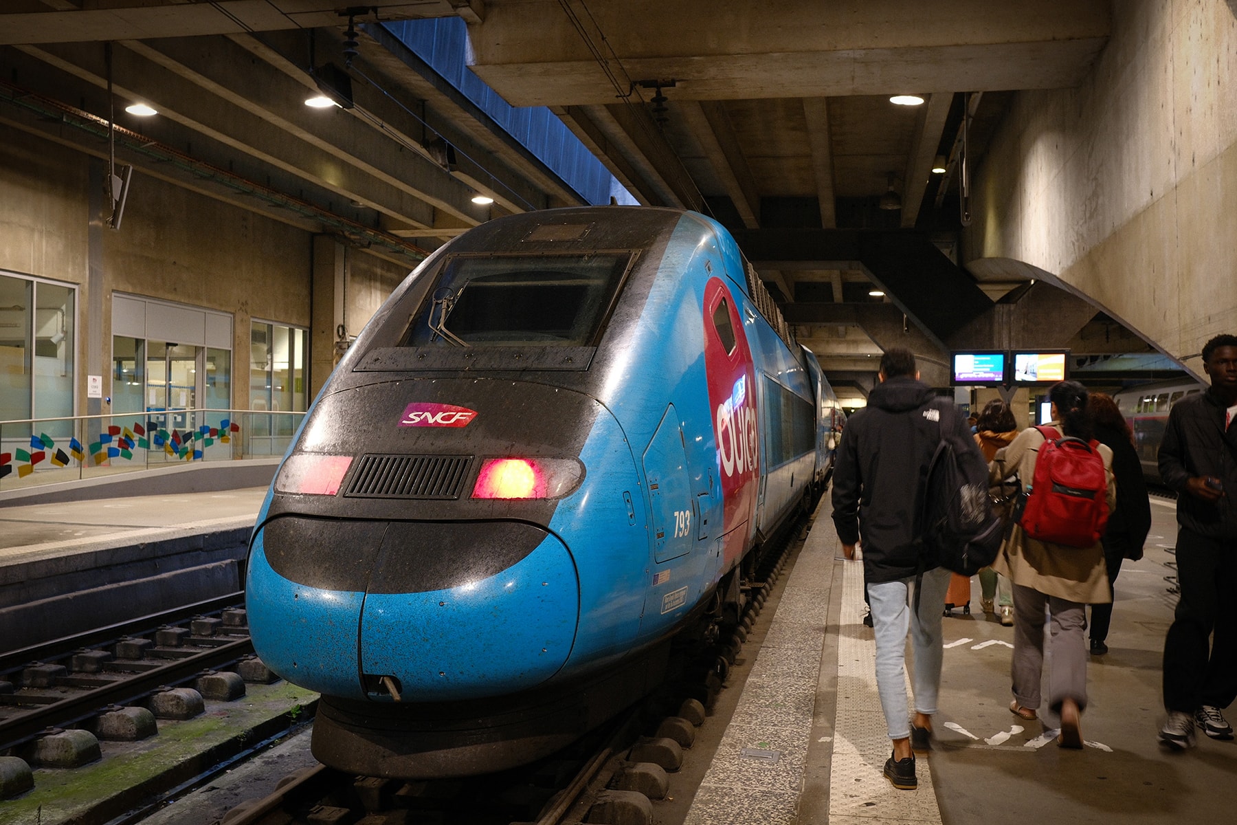 ボルドーに向けパリ南部のモンパルナス駅へ。フランスブルーな高速鉄道、ウィゴー。ちなみに改札は運行時間を厳守するため発車5分前に閉鎖、よって5分を切った改札には携帯アプリの乗車チケットを駅員に掲げ「そこをなんとか~」と嘆願するパリジャンもちらほら。かつて私も2度ほど芝居じみてみましたが……玉砕。