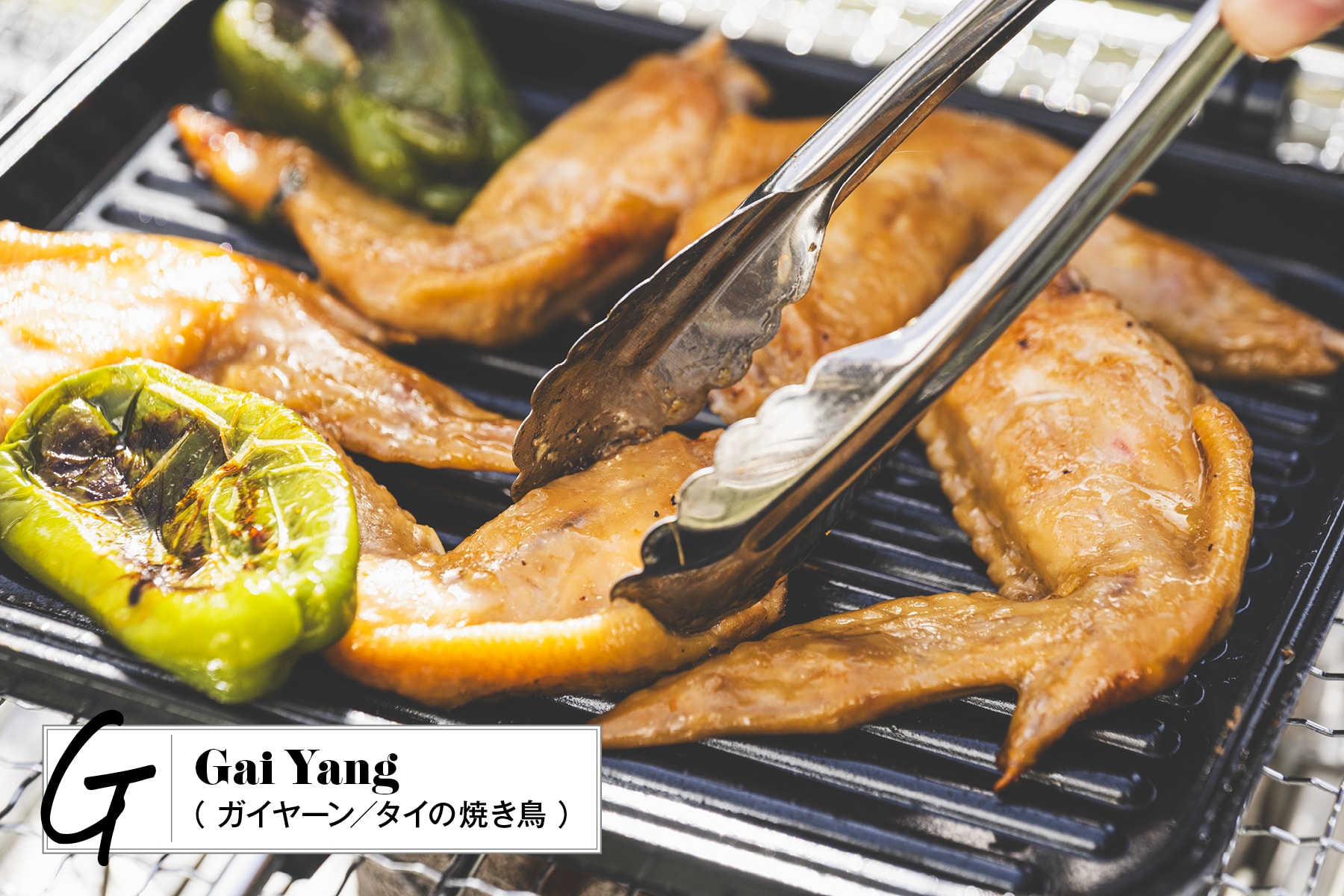 タイといえばトムヤムクンやグリーンカレーなどが有名ですが、東北部(イサーン地方)には、鶏肉を炭火で香ばしく焼いた「ガイヤーン」という郷土料理があります。名前の由来はタイ語で「ガイ(鶏)」+「ヤーン(焼く)」。