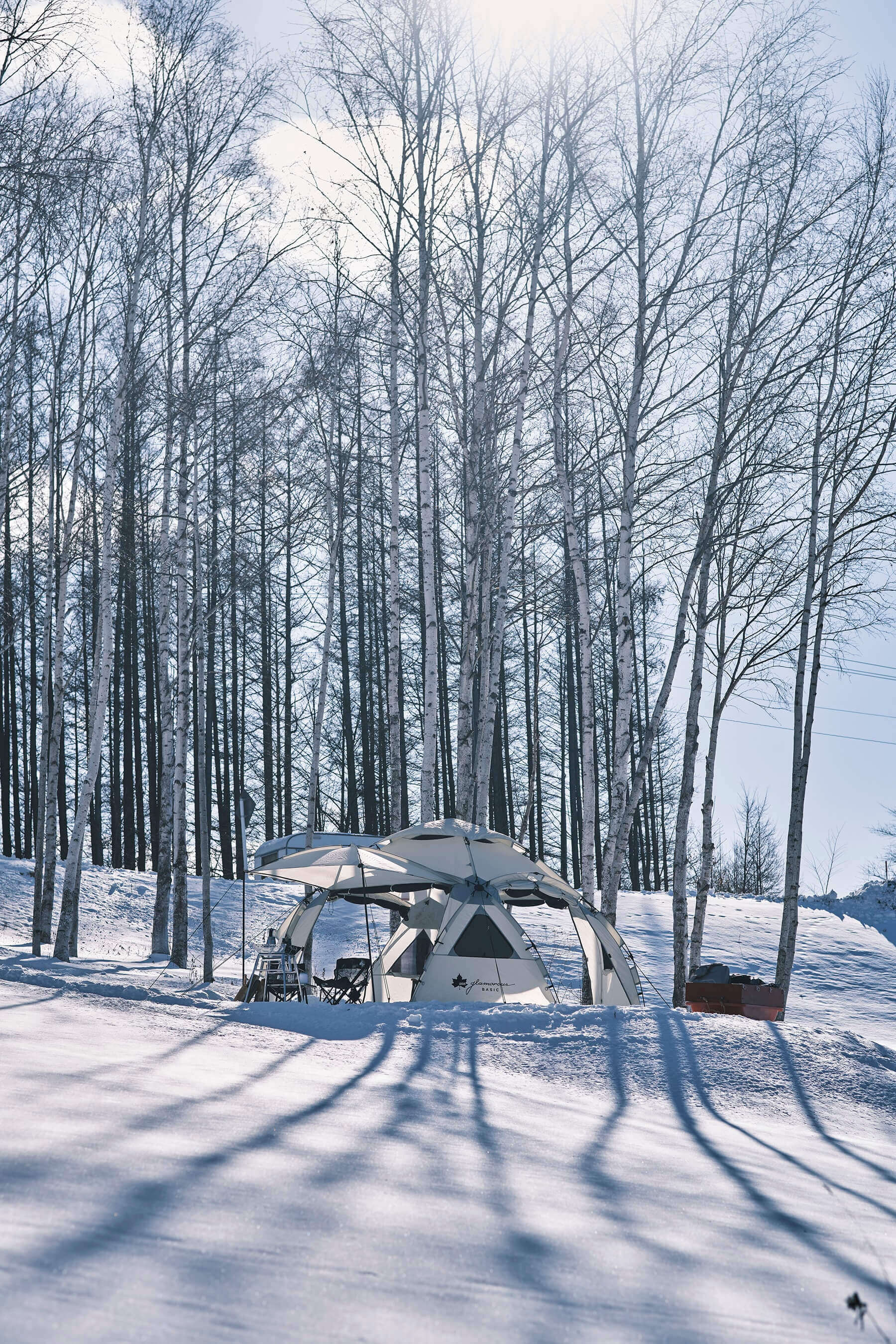 写真のキャンプ場は8月号「フェスを楽しむ準備とアレコレ。」の企画で訪れた、北海道札幌市の「仲洞爺キャンプ場」。湖畔のすぐそばにテントを張ることができ、その景色の美しさに思わず笑みがこぼれました。