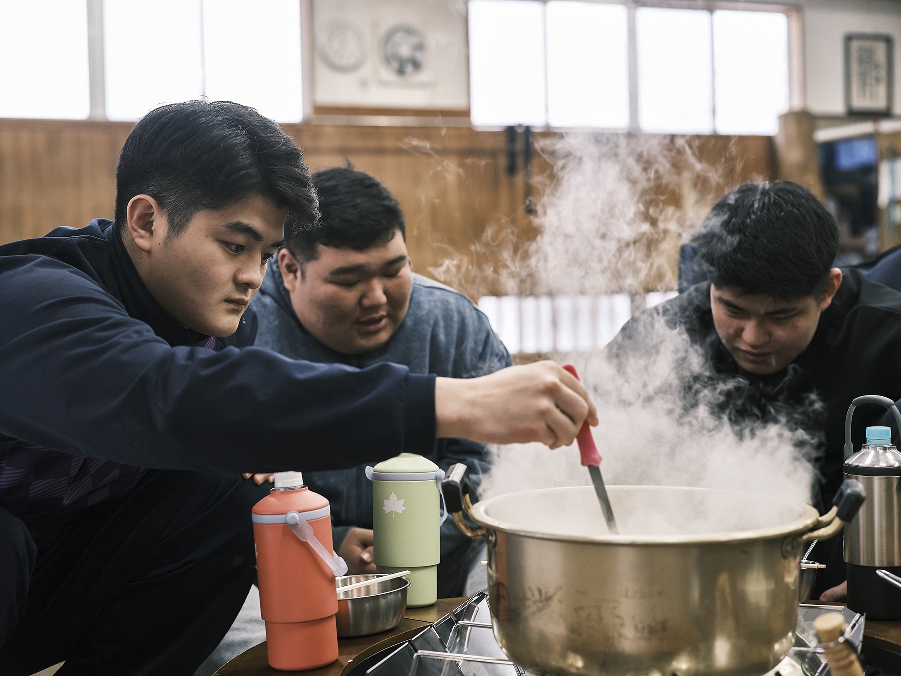 稽古中の凛々しい表情も、ちゃんこ鍋のほっこり顔も、実は取材の合間にマクドナルドのハンバーガーをスマホでこっそりチェックしていた姿も。全部が青春で全部が名場面でした。