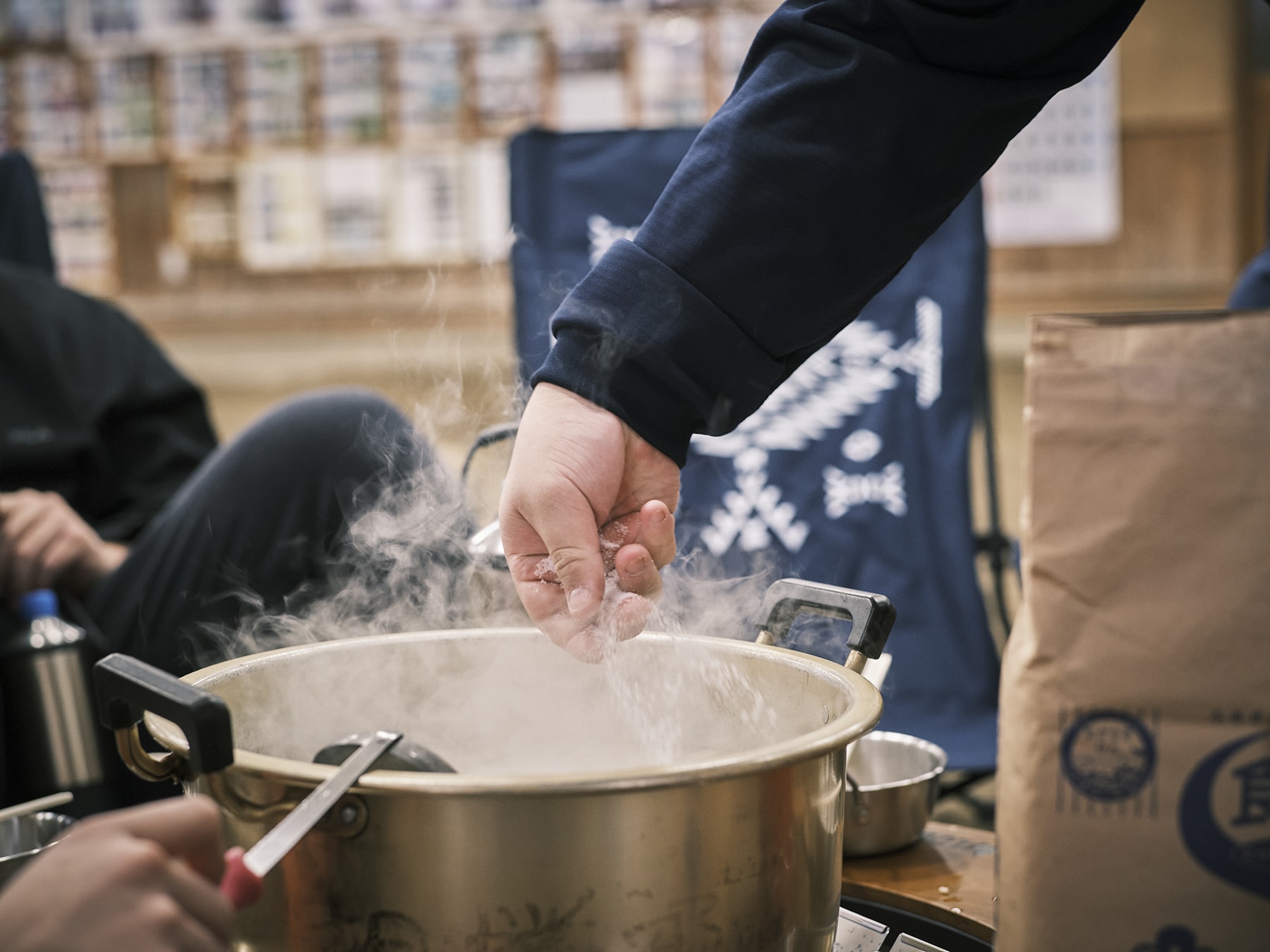 そんな言葉はないかもですが〝塩さばき〟が違う! 担当は、三農相撲部で塩ちゃんこ鍋づくりが一番上手な奈良くんです。