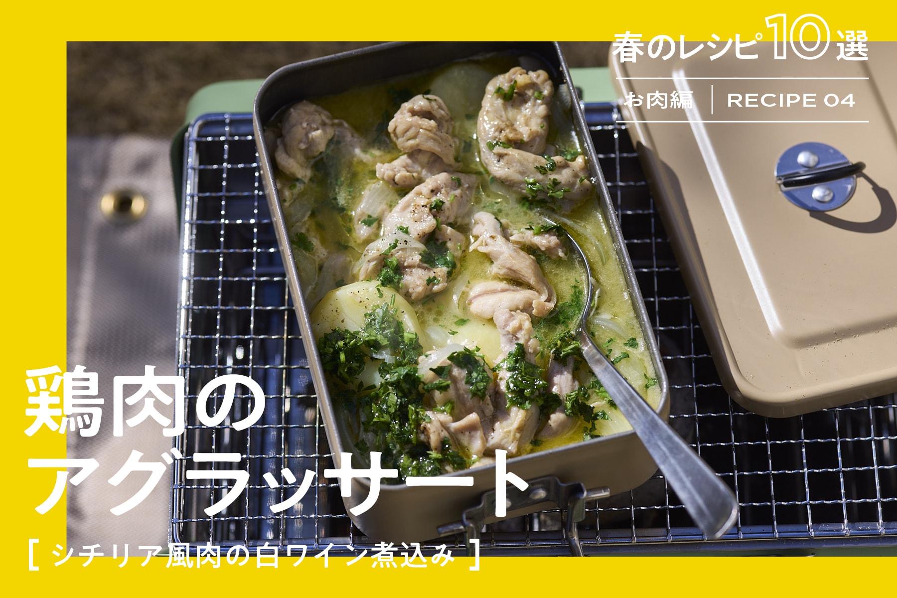 4.表面に焼き色がついたら裏返し、白ワインと水を加える。