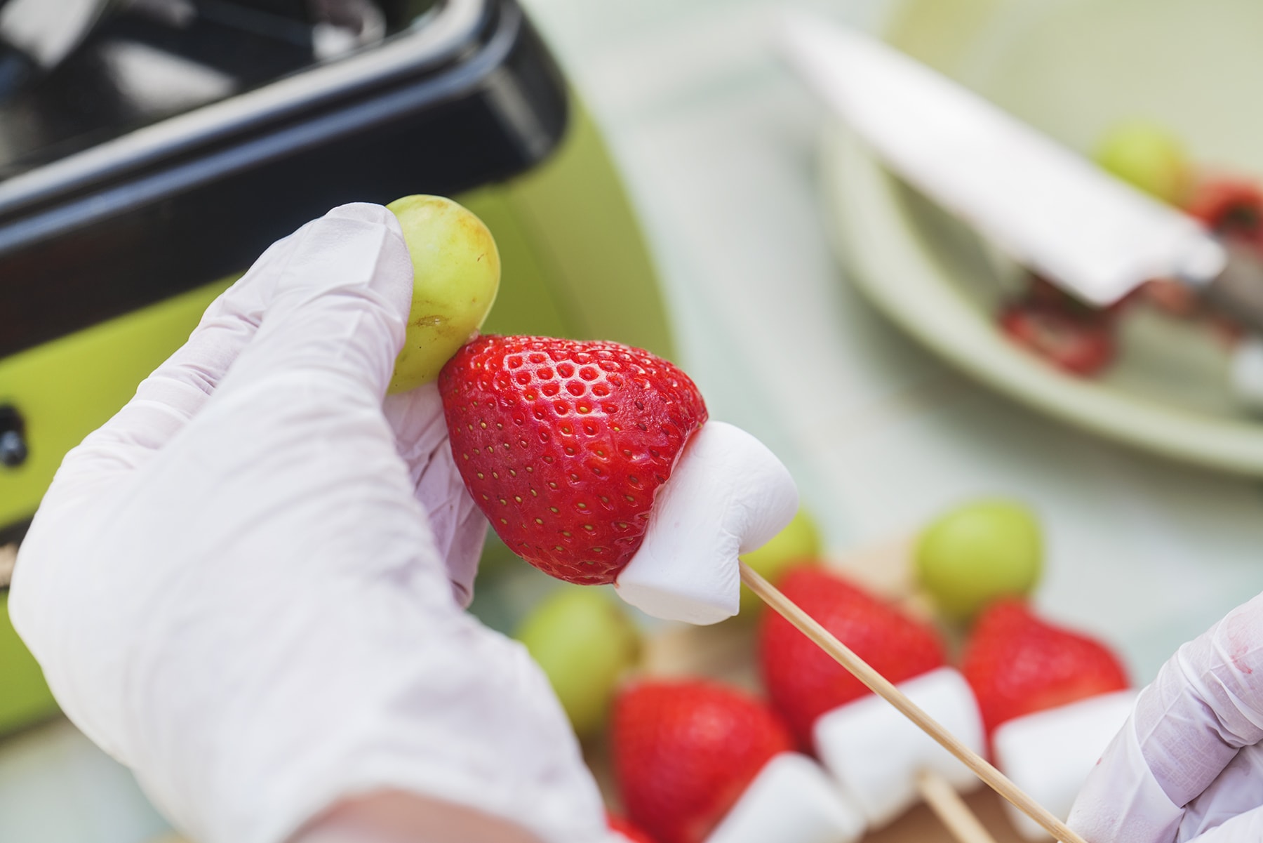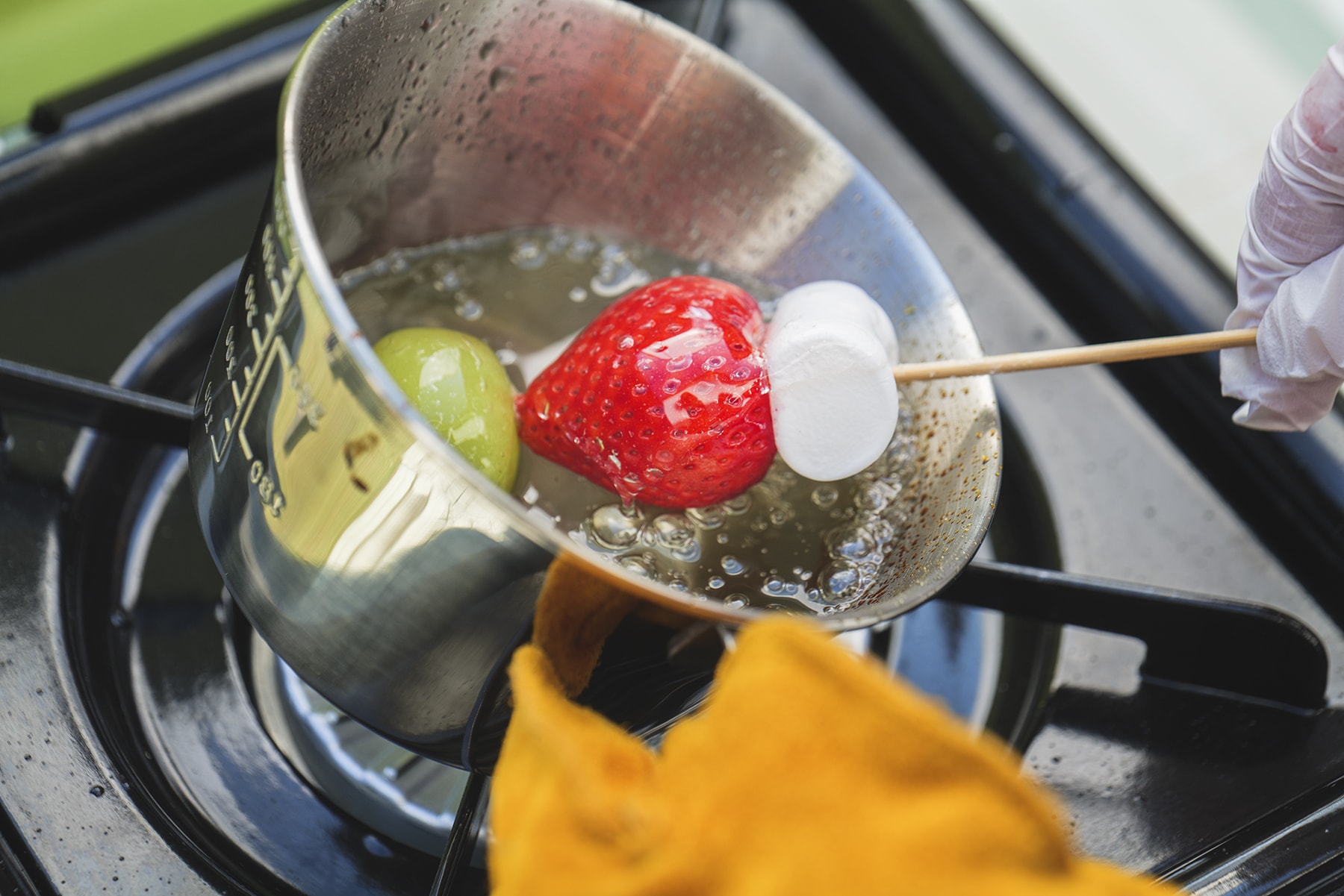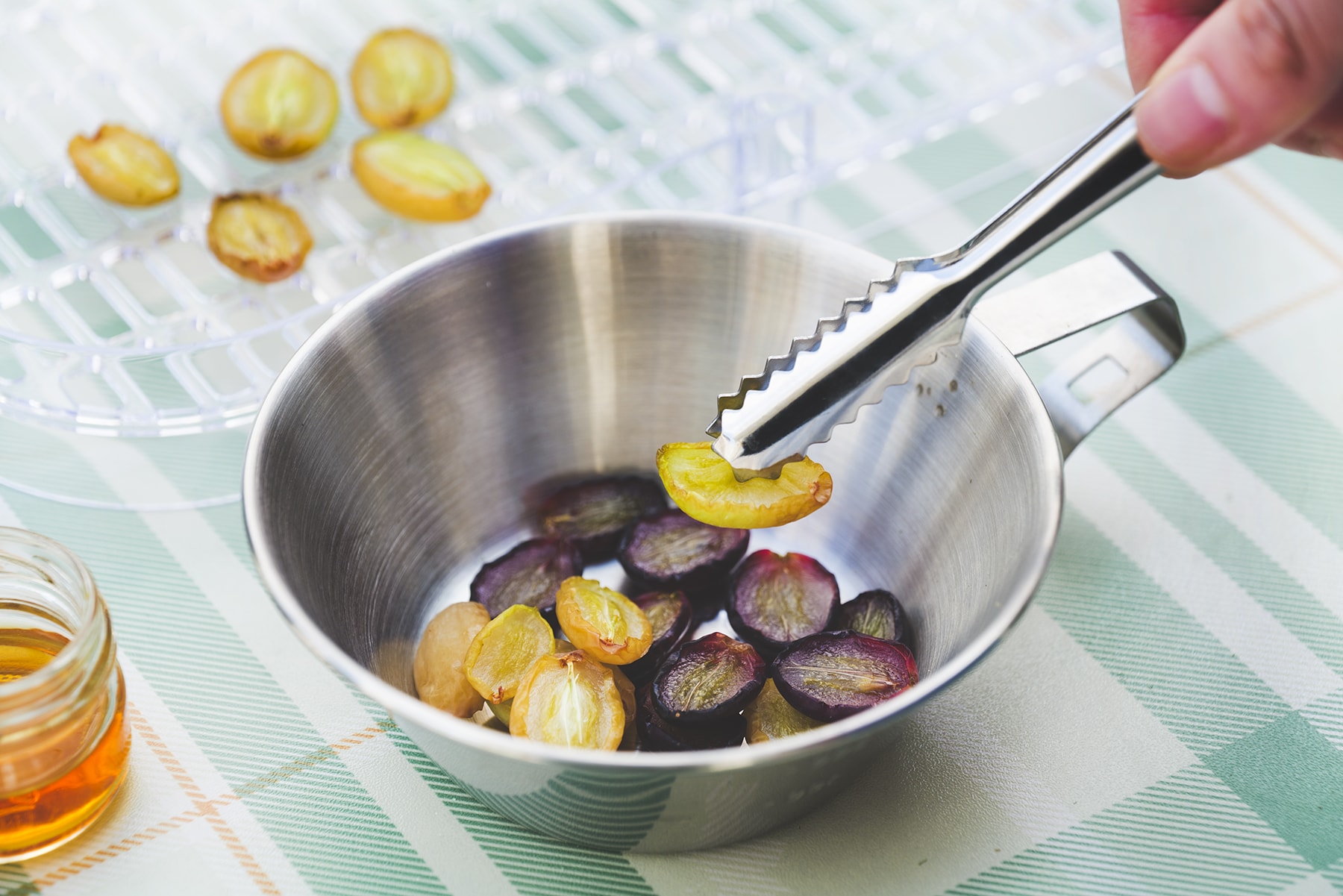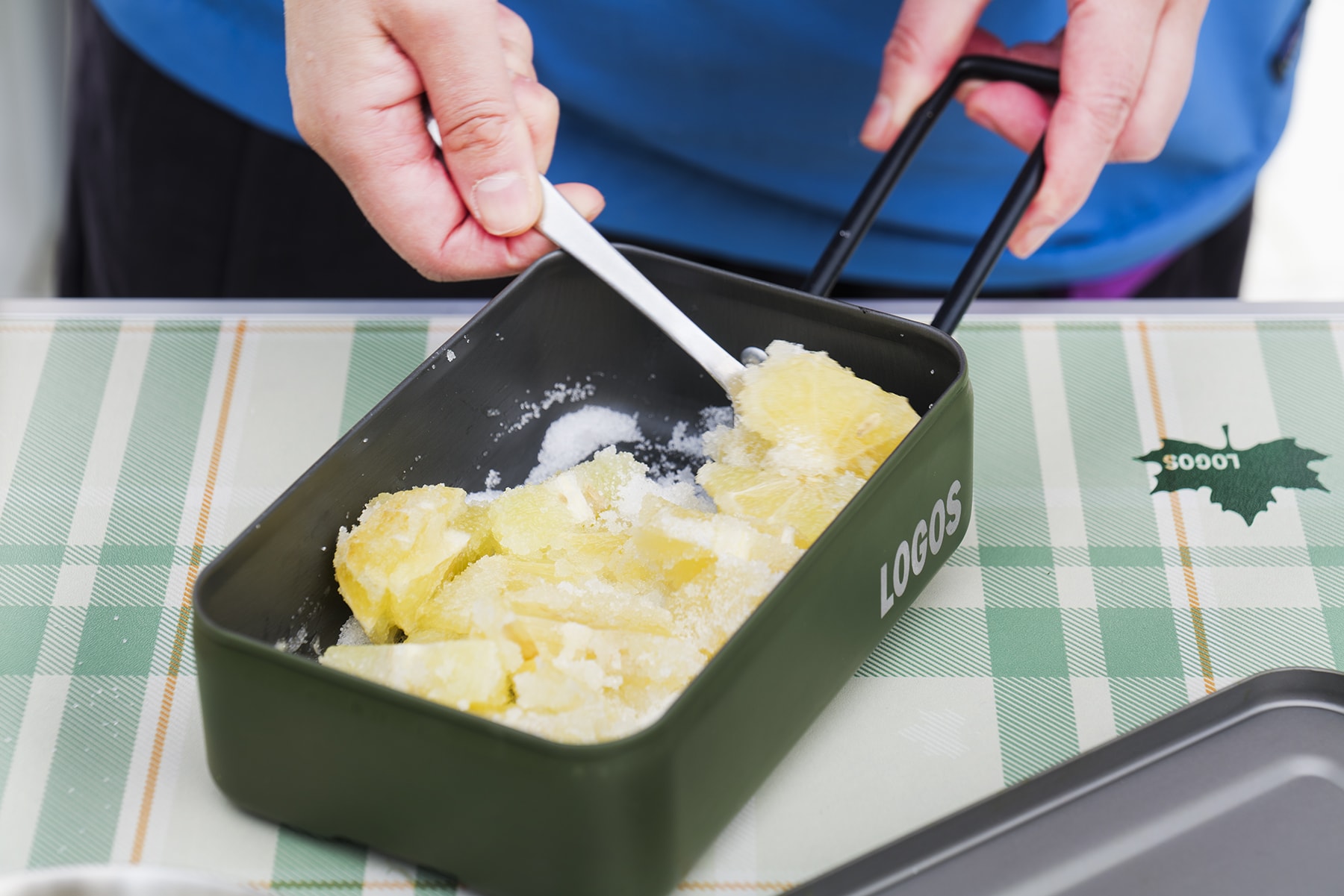 3.薄切りにした果肉を「LOGOS カラーメスキット」に入れ、<A>を加えて混ぜる。