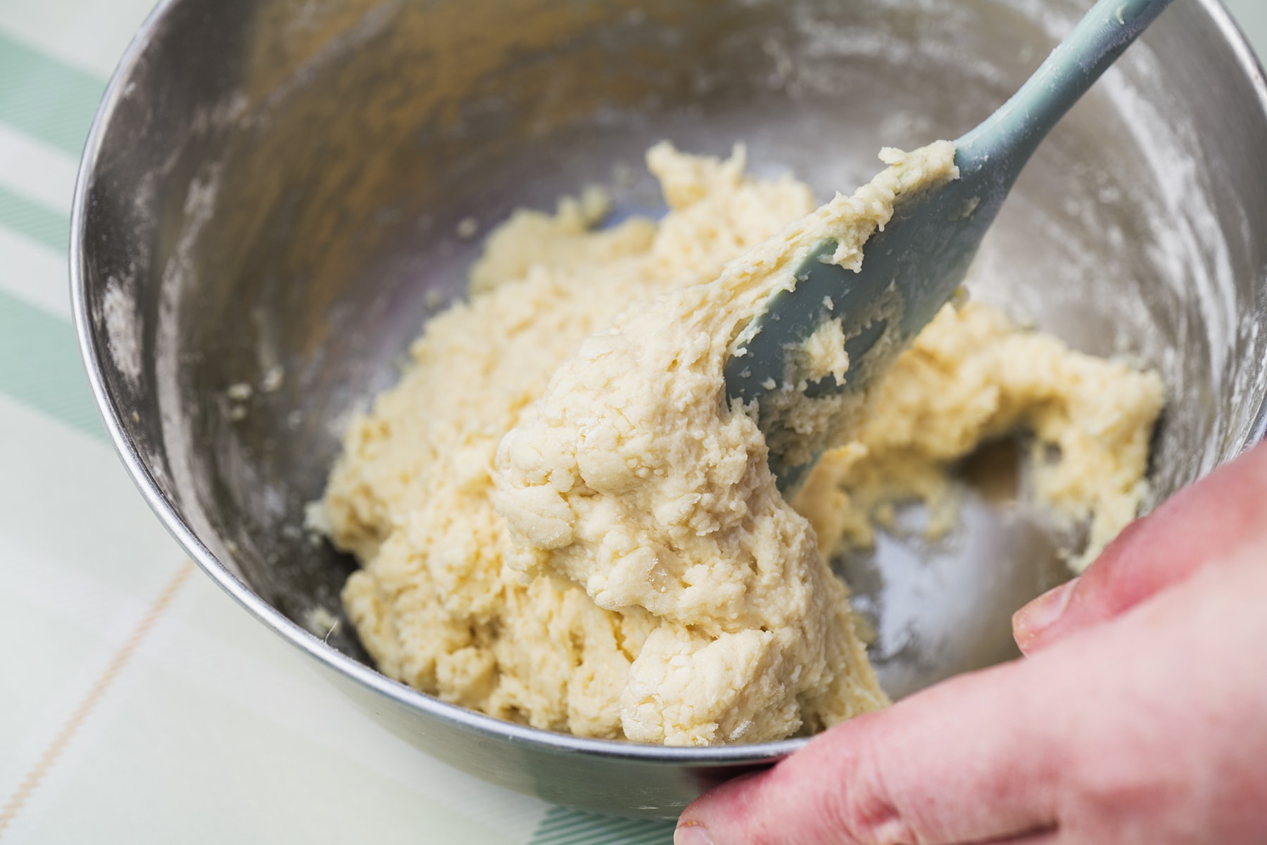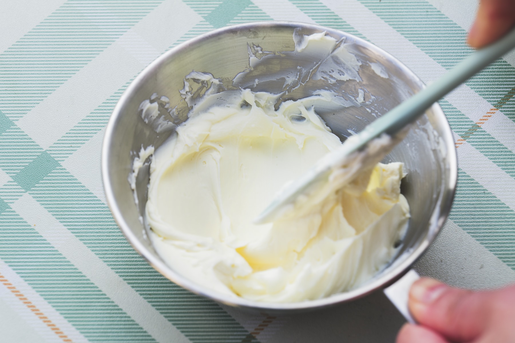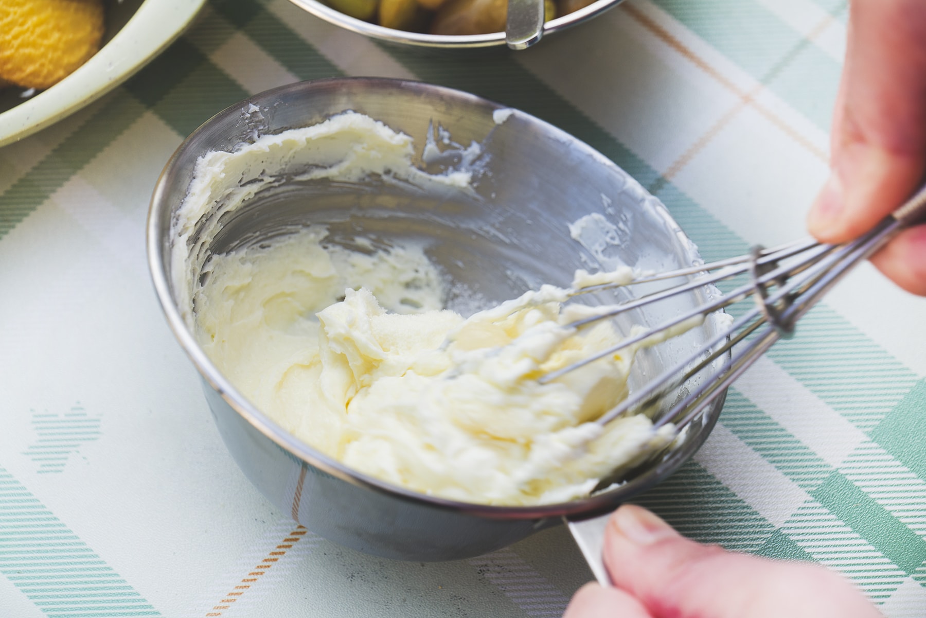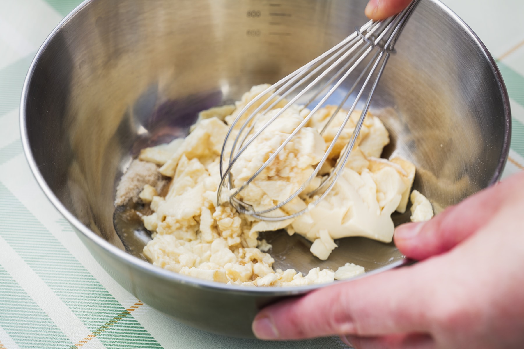 4. 水気をしっかり切った外皮と無塩バター、<B>を2に加える。