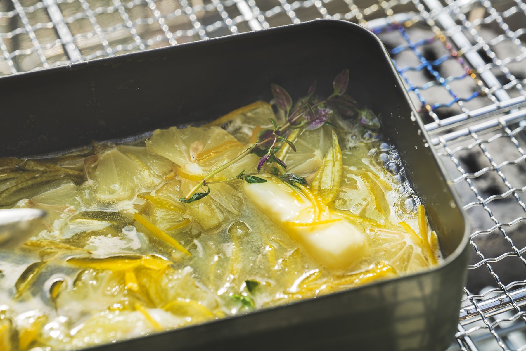POINT! タイムは煮込みすぎるとえぐみが出るため、約5分煮込んだところで取り除く。