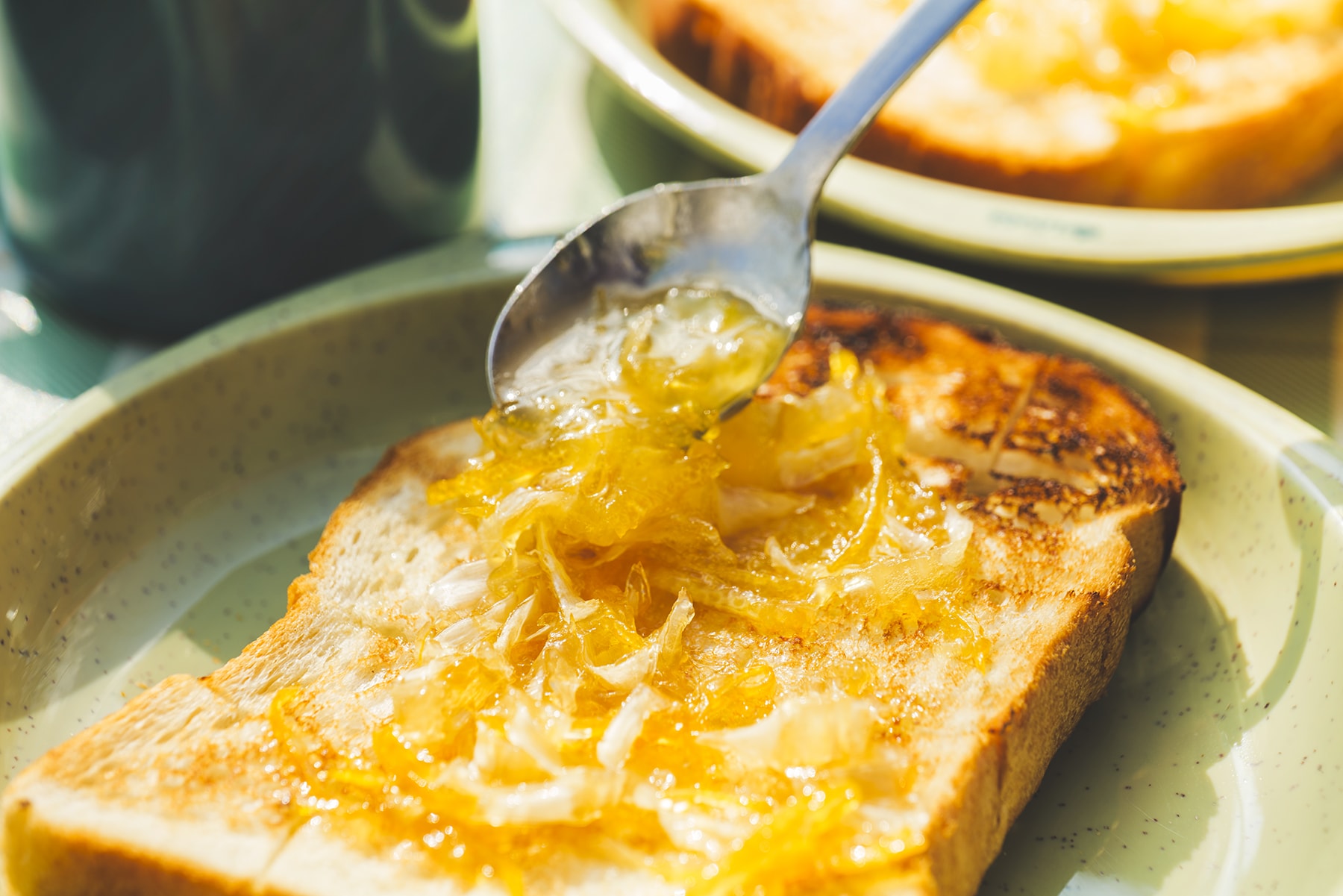 6. 温かい状態でトーストにのせる(お好みでシナモンパウダーをふりかけても◎)。