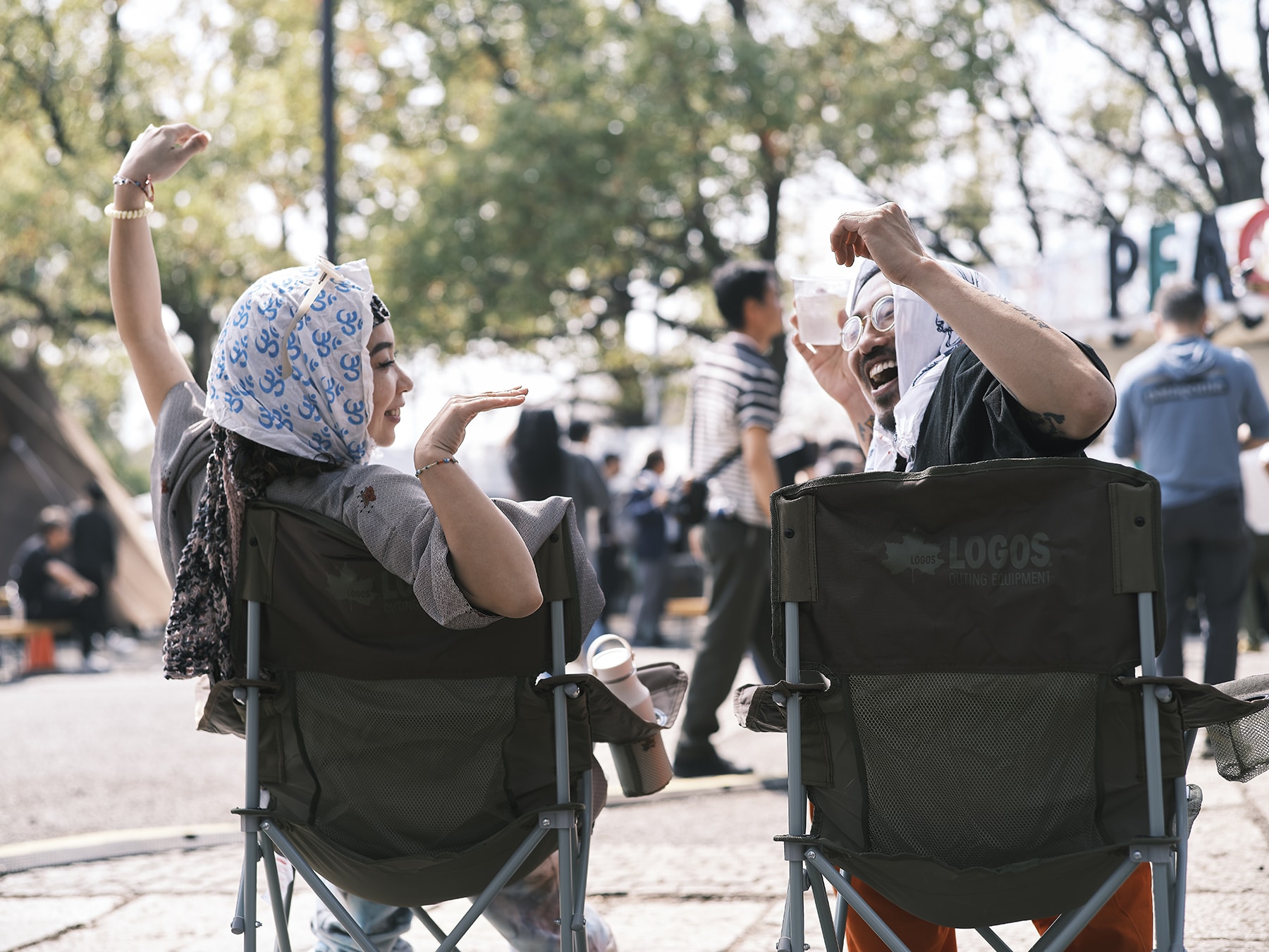 海でもキャンプ場でもないのですが、「バックアシストアームチェア」は、チェアOKなフェスにピッタリな一脚。さてさて、このチェアに似合う人をと探していたら、最高のふたりに出会えました。