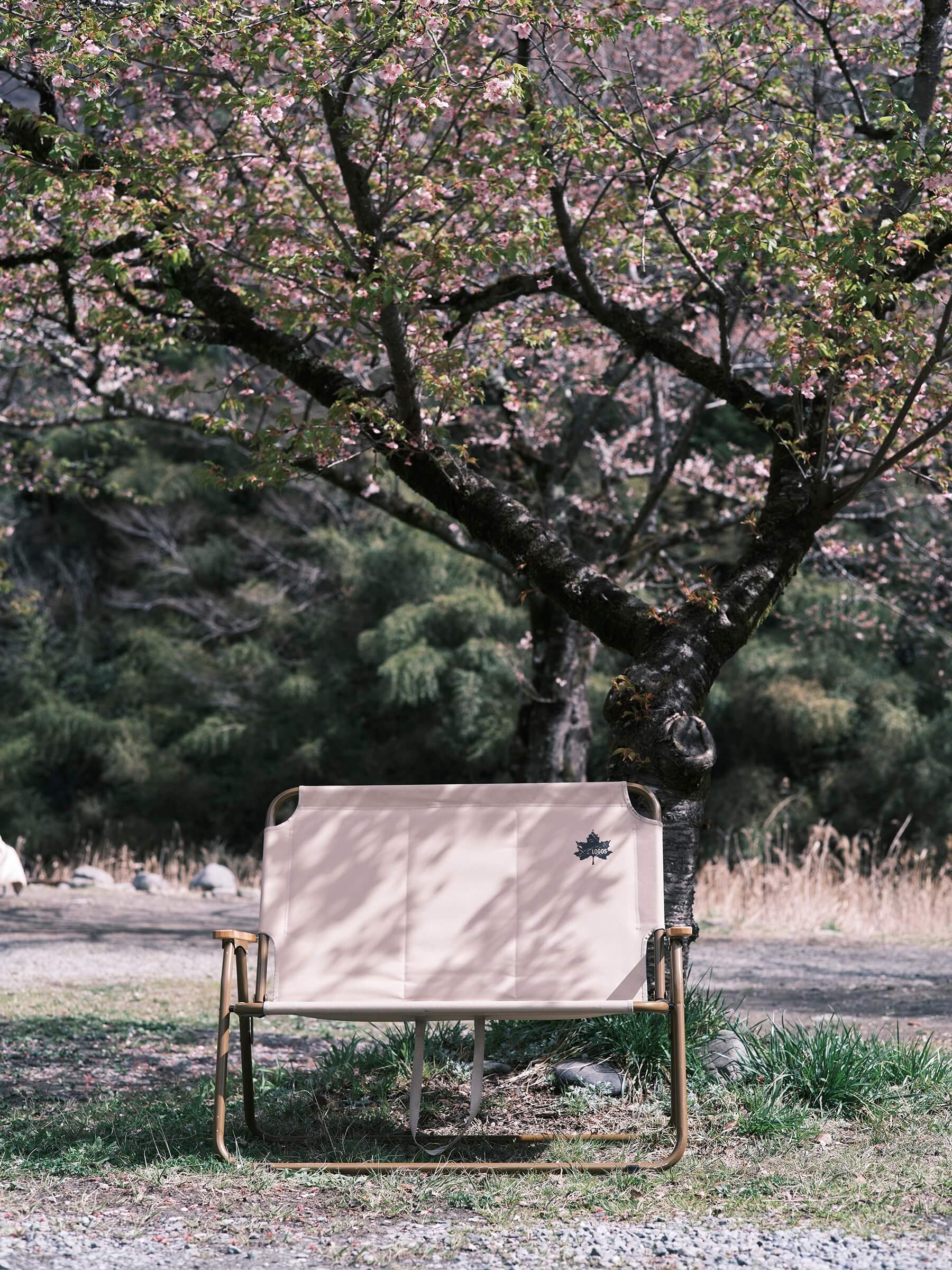 そんな連泊キャンプにもおすすめなのが、大人ふたり座っても余裕のある「Tradcanvas チェアfor2(ハイバックタイプ)」。LOGOSが業界ではじめて発売した折りたたみ式2人掛けチェアの復刻モデルです。背もたれが高く、座面もワイドに設計されているため、、ゆったりとした快適な座りごこちになっています。さらに、座面と背もたれにはパッド入が入っており、長時間使用しても疲れにくいのが特長です。