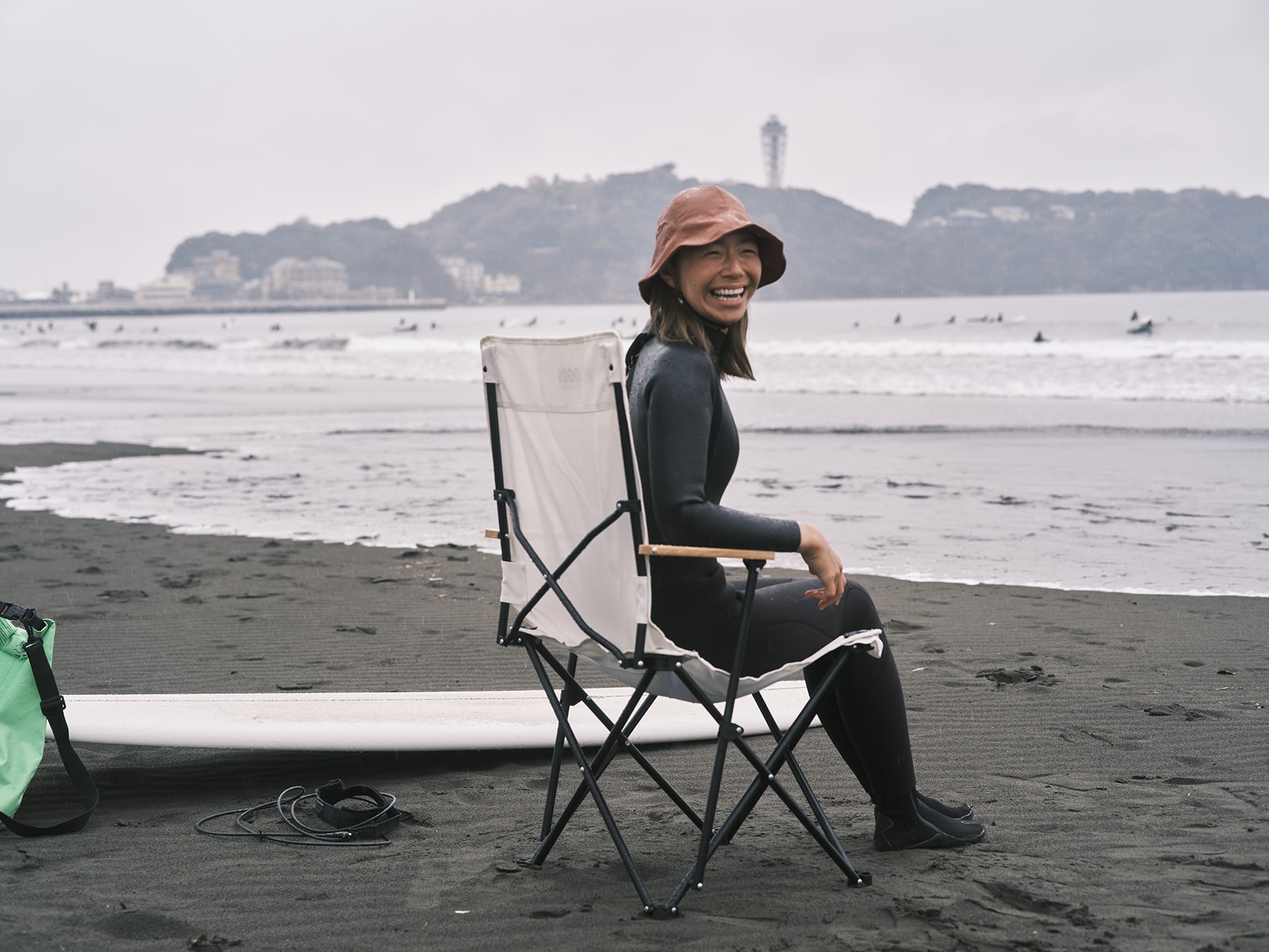 Yukiさん、波乗り前に座ってくれて、ありがとうございます。サーフィンにハマったのが3年前から。いまでは週に3〜4回、波に乗るライフスタイルになったのだそう。
