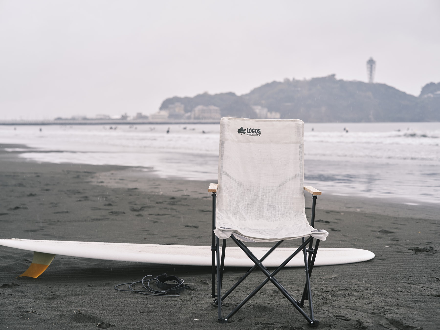 実は、今回の〝LOGOSの厳選チェア9選〟は、なるべく使い勝手にあわせたおすすめをしたいなぁと考えておりまして。故に、鵠沼や城ヶ島でも、サーファーの方や釣り人に座ってもらったのでした。