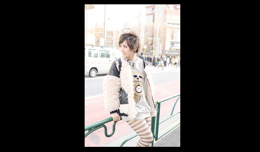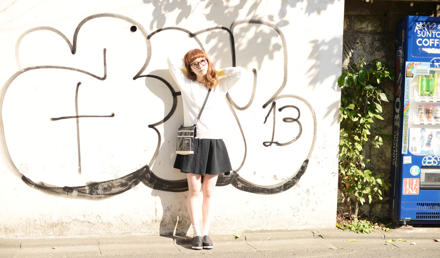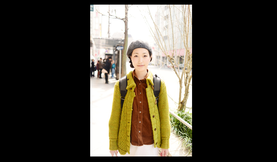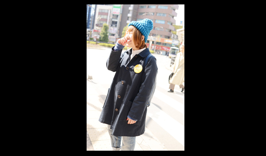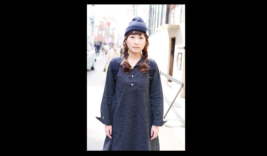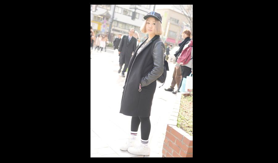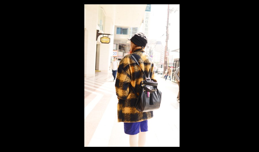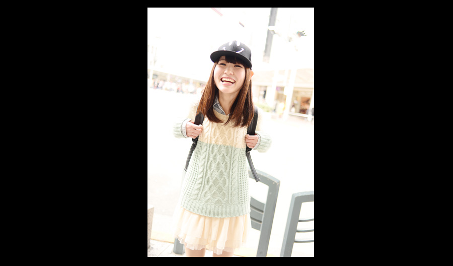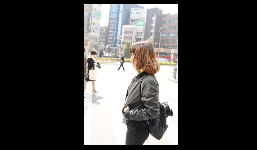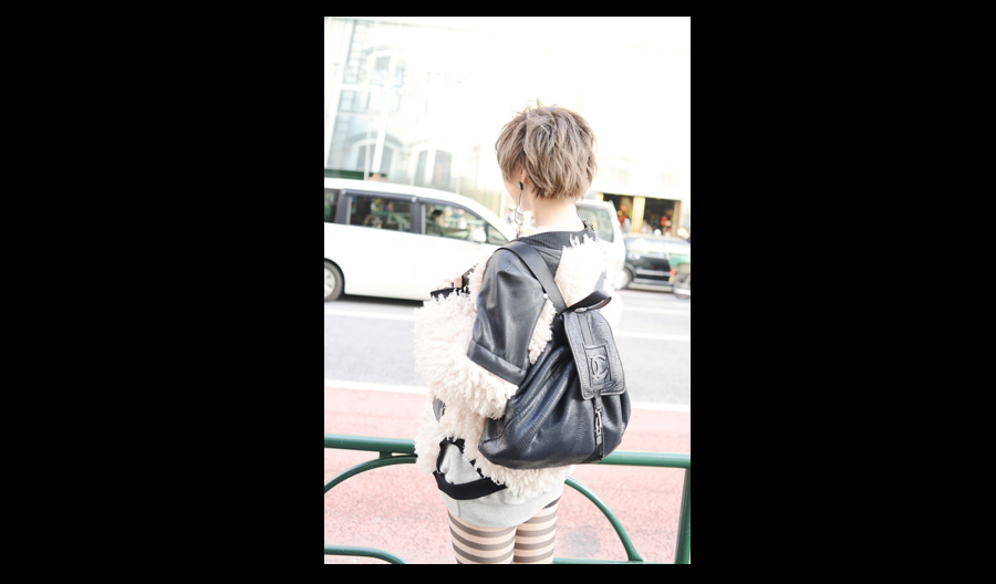 お散歩大好き少女の彼女は、「スピンズ」のバックパックを。黒が合わせやすくて好きだとか。