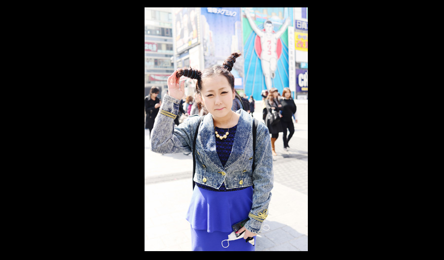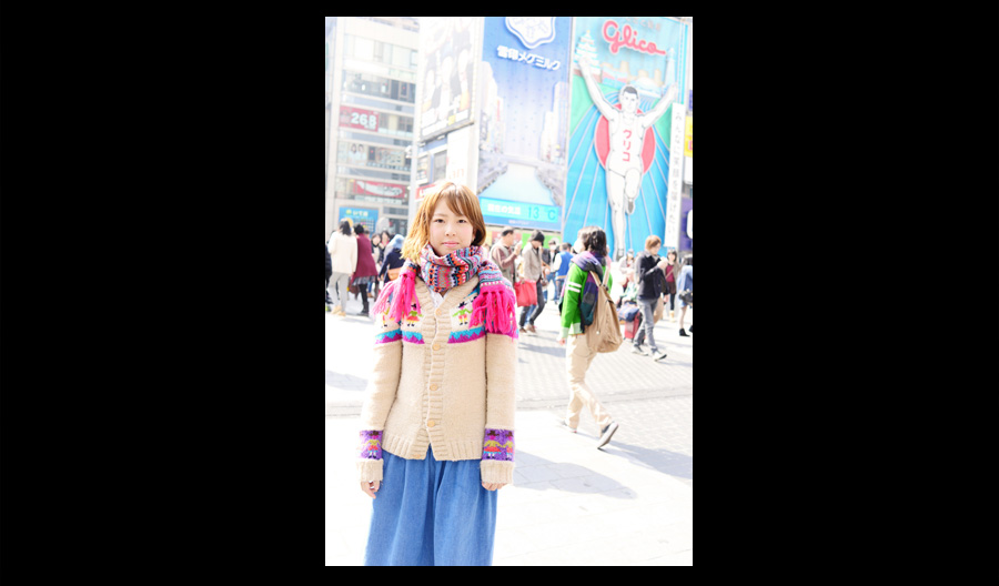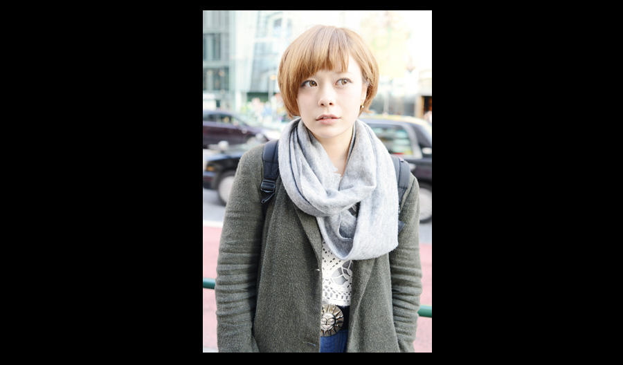 廣田真奈美さん(19歳)。「今日は買物なんですけど、京都と言えば、やっぱりお寺巡りですね」。