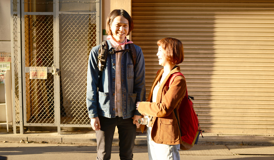 奥村勇太さん(21歳)と下戸雛子さん(20歳)。「京都のおすすめですか? ……ドトールコーヒー(笑)」。