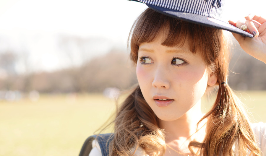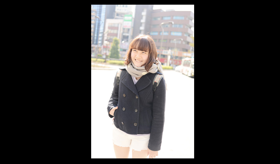 梶原里沙さん(18歳)。「アウトドア、好きですよ。芝生で遊んだり、キャッチボールも好き!」。