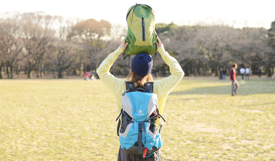 彼女のバックパックは、「ヘザー」。「4種類の使い勝手があるところが嬉しいです」。