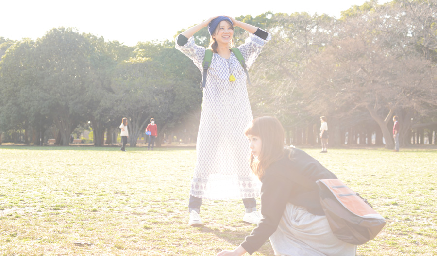 横浜から遊びに来ていた大石舞さん(20歳)。「アウトドアと言えば、ピクニックが好き!」。