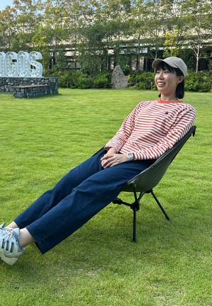 シンプルなデザインとレトロ感のあるボーダー柄で、コーディネートのアクセントにもなる一着。