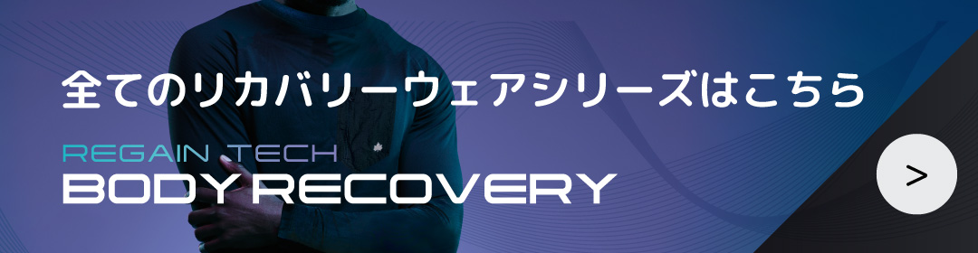 自らの体温を利用して遠赤外線を輻射する特殊繊維「リゲインテック」を採用した、疲労回復ウェア。