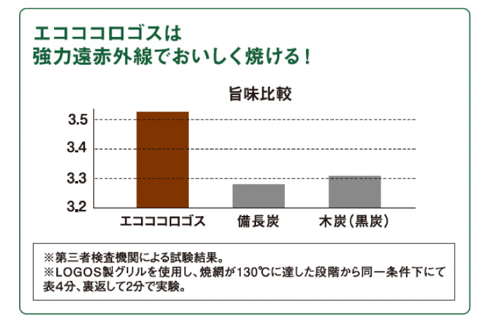 第三者検査機関で味覚調査をした結果、遠赤外線を多く発する備長炭で調理したときよりも、高い数値で旨味成分を計測。
