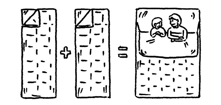 同じシュラフ同士で連結すれば、ダブルサイズにすることもできる。