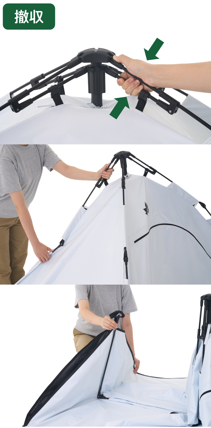 片手でスムーズにできるシンプルな設計で、撤収も簡単です。