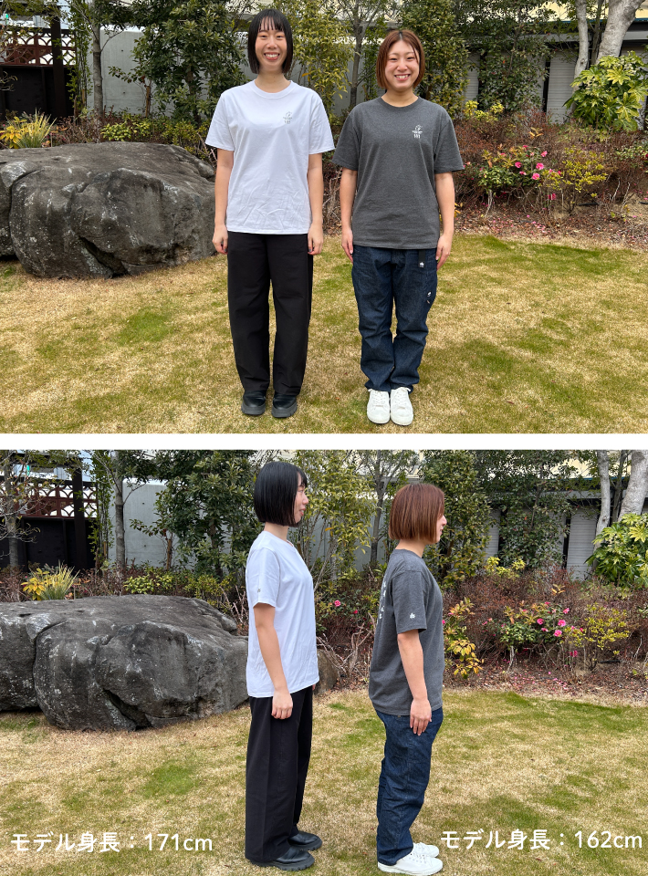 XS〜XLまでの幅広いサイズ展開と男女問わず着用できるシルエットで、幅広いスタイリングに対応します。