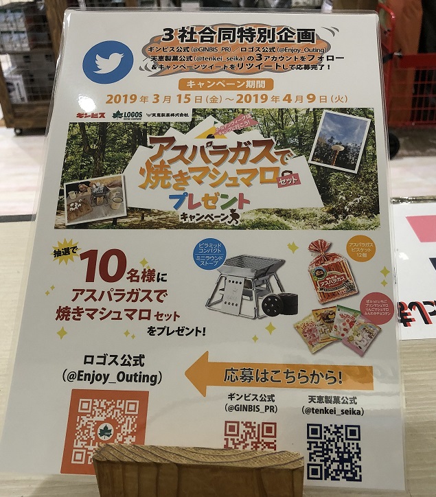 ギンビスさん、天恵製菓さん、そしてロゴスの3つの公式ツイッターをフォローして頂きキャンペーンツイートをリツイートして頂くだけで応募完了♪