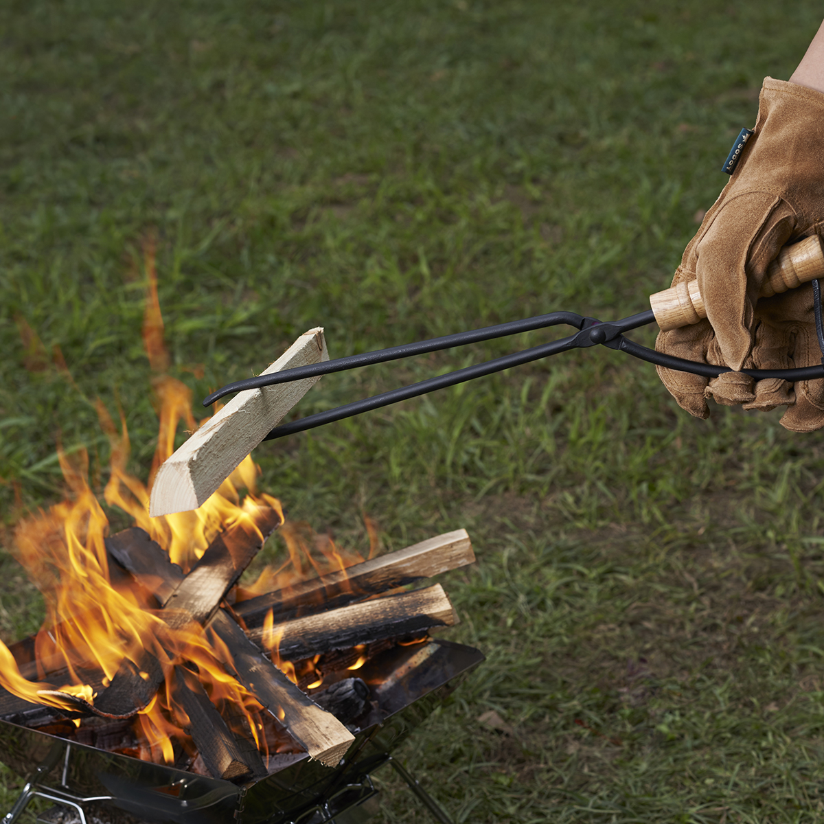 その名もLOGOS 薪ばさみ!渋い木製グリップが目を惹く便利アイ