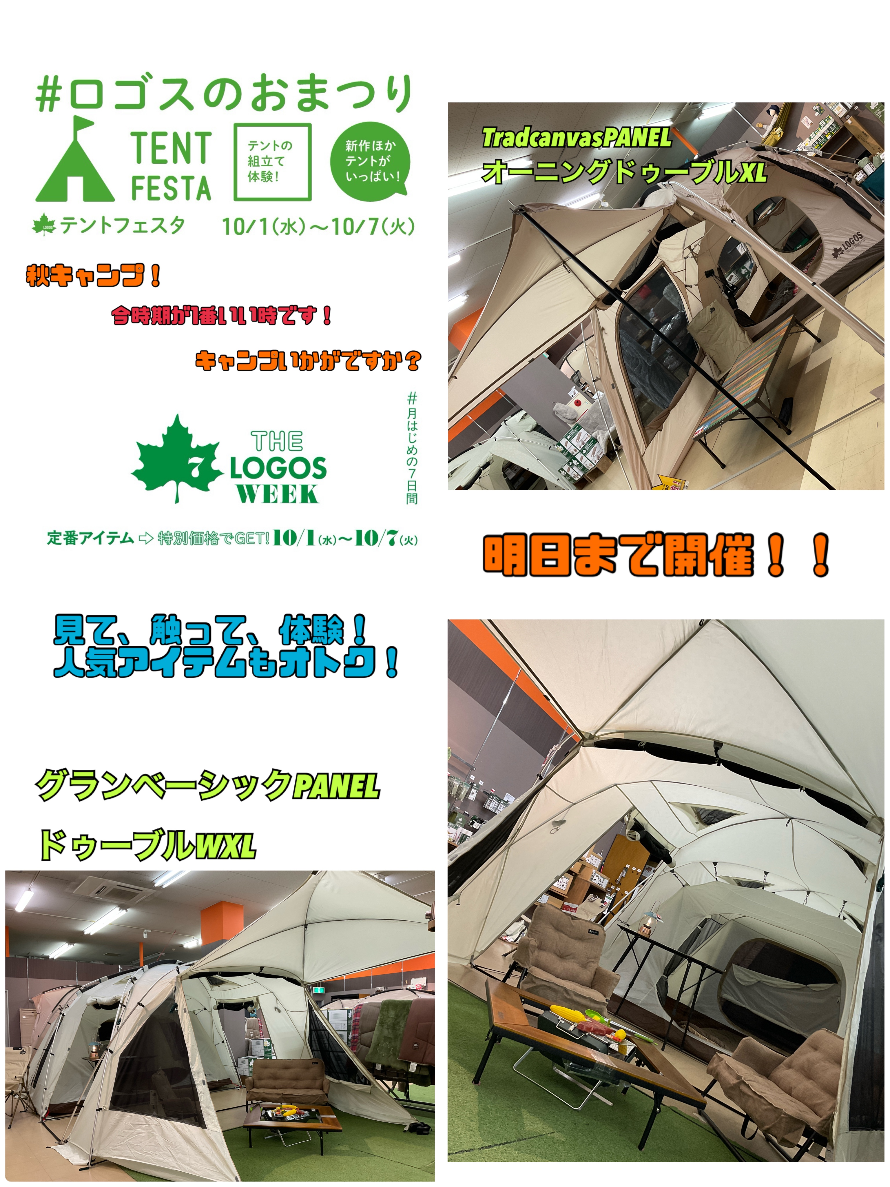 『テントフェスタ・LOGOS WEEK明日までです‼️』