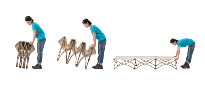 広げるだけでセッティングが完了する、組立て不要の収束型ベッドで