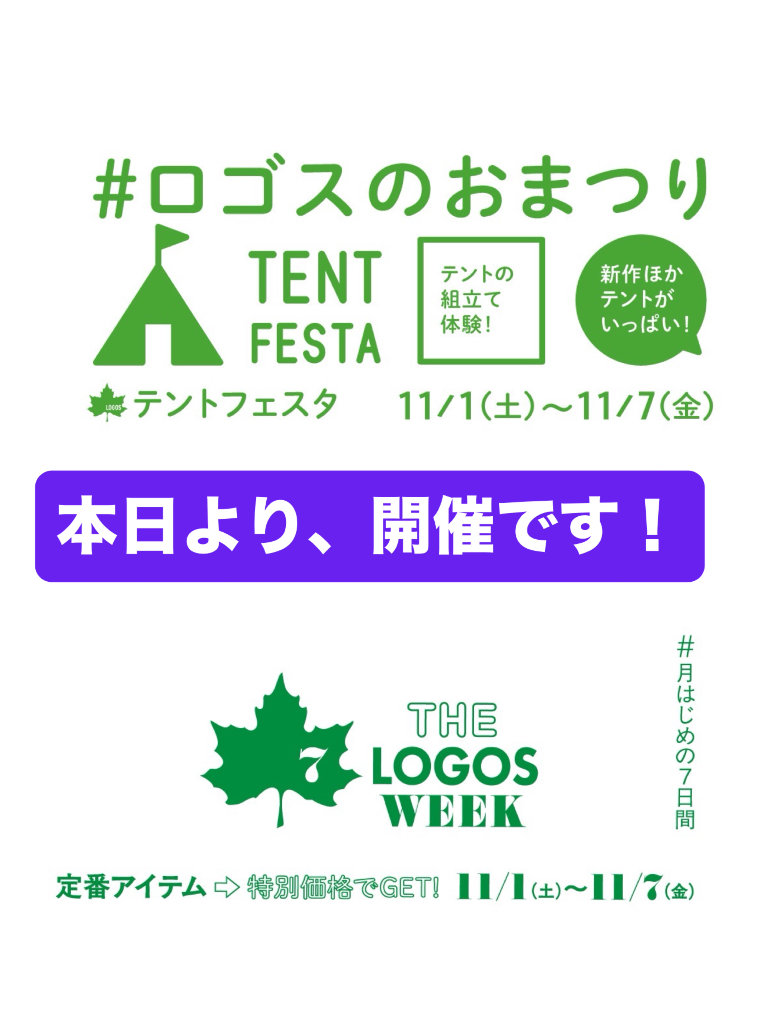 テントフェスタ&LOGOS WEEK開催決定!(11/1~11/7)