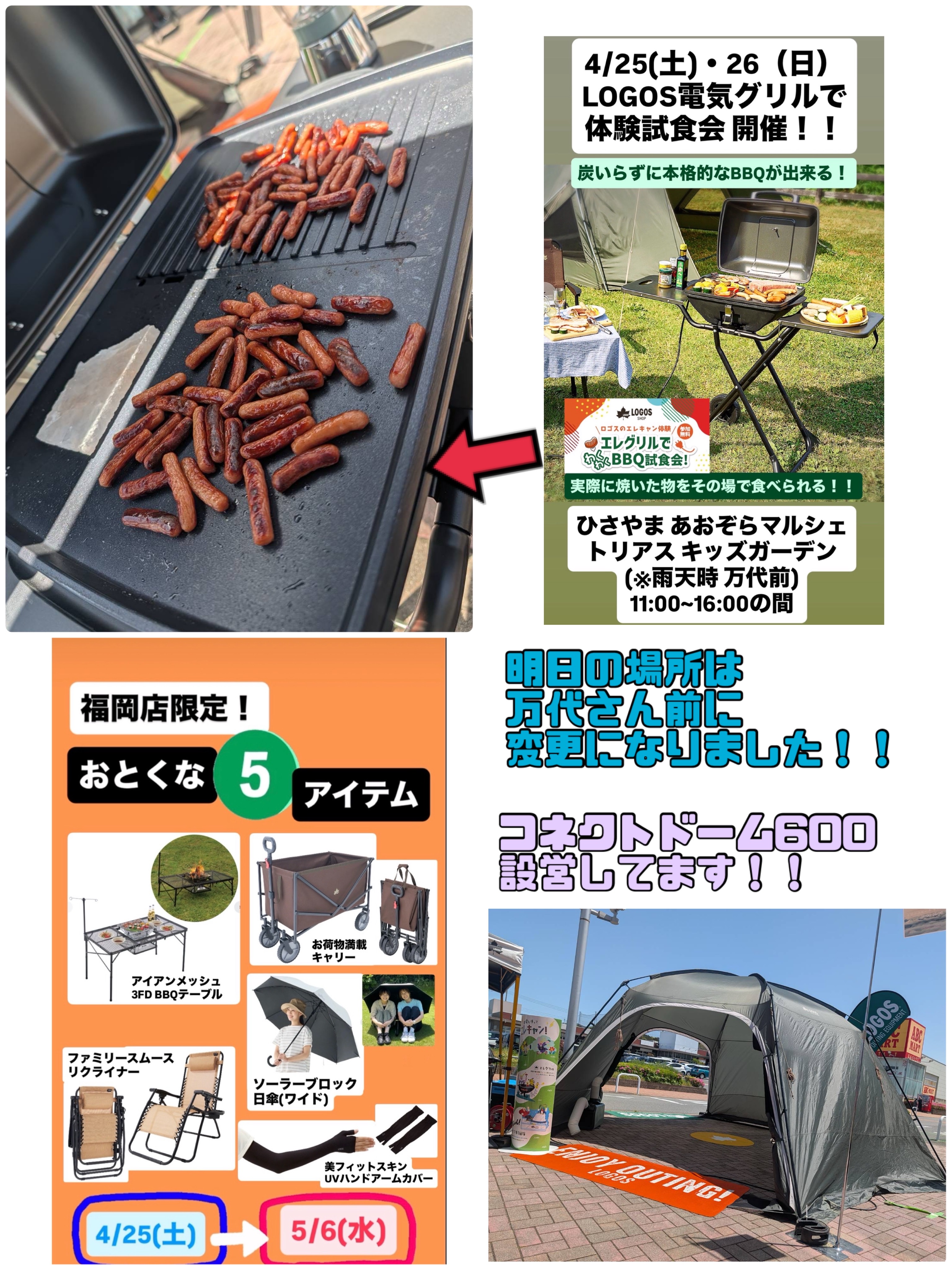 #LOGOS福岡店 #LOGOS福岡店限定おとくな5アイテム #LOGOS野電エレキャン体験 #エレグリルでBBQ試食会 #トリアスあおぞらマルシェ