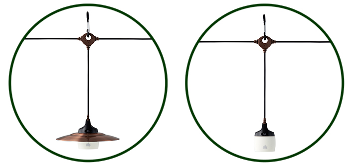 着脱式のシェードが付属。連結もできるので、シーンや雰囲気に合わせて使い分けが可能です。