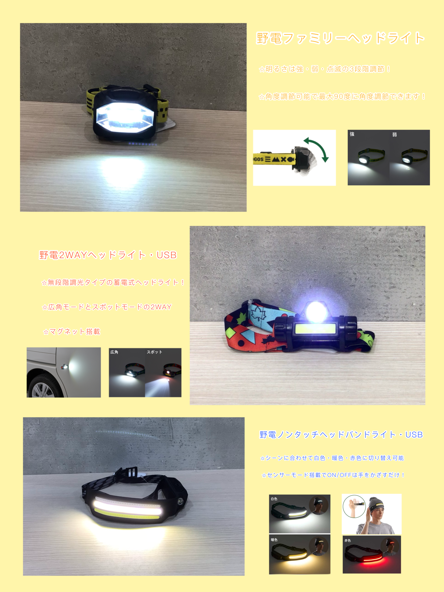 ⭐︎野電ノンタッチヘッドライトバンドライト・USB