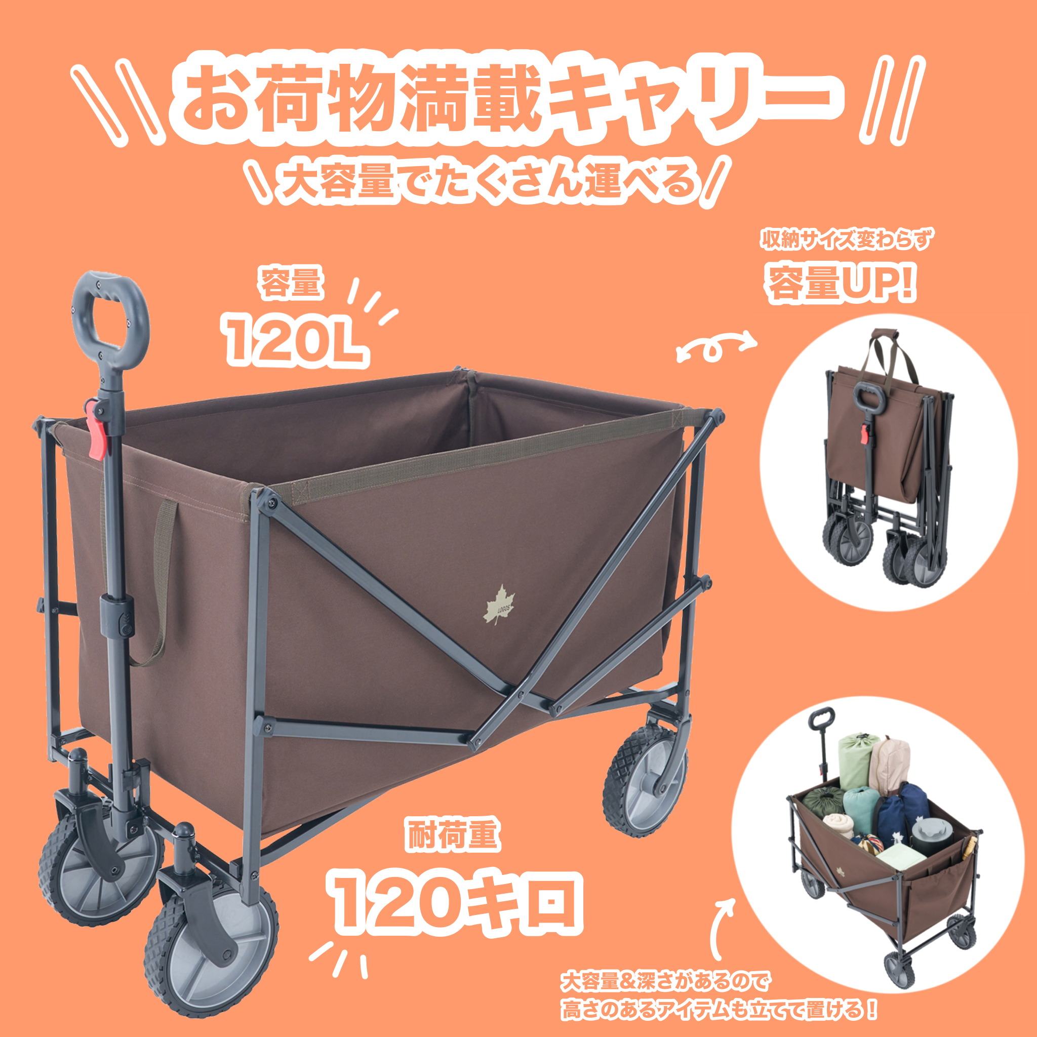 大容量でたくさん運べて、コンパクトに収納出来るキャリーカート