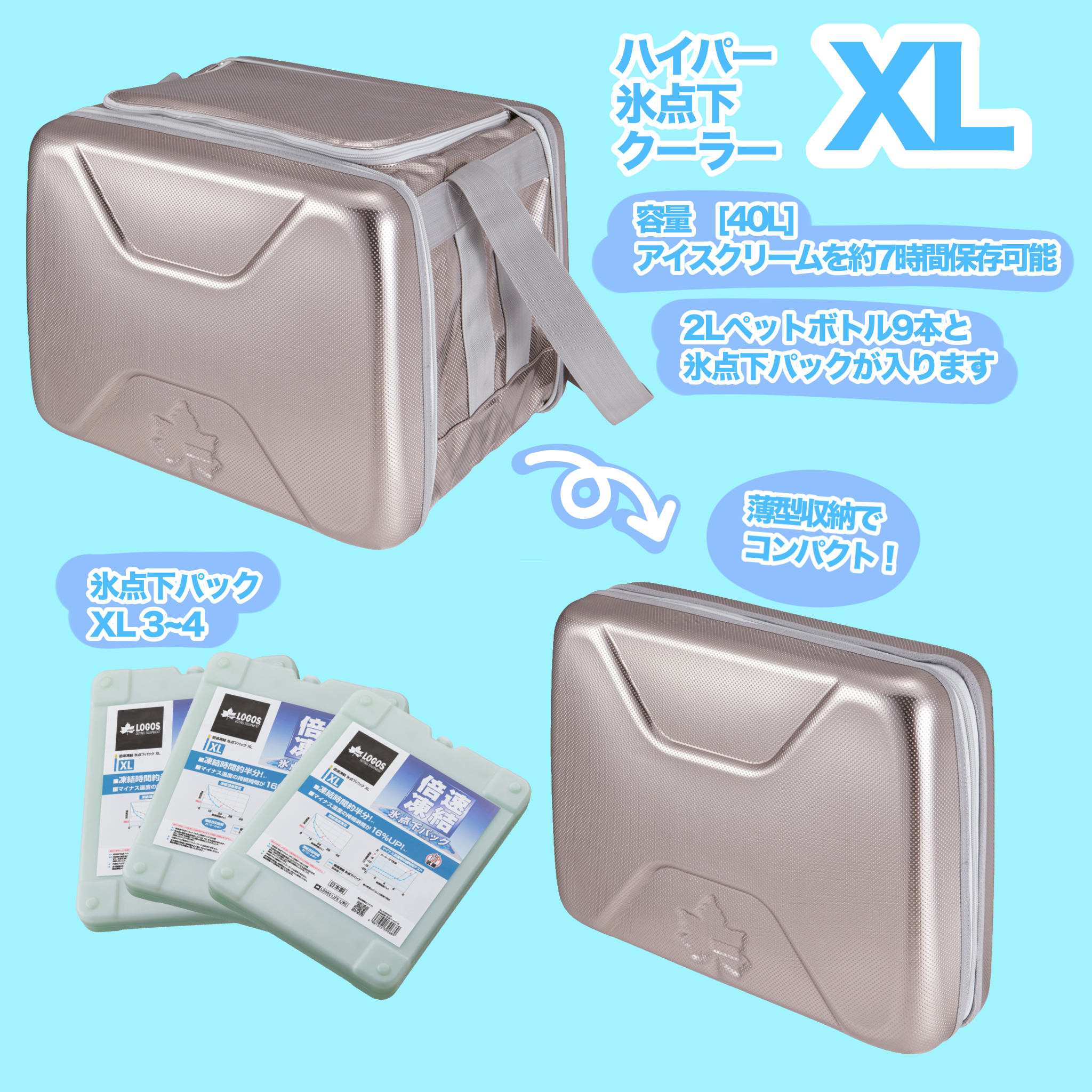 「氷点下パック」シリーズの性能をより高めるアイテムとして誕生した高性能ソフトクーラーです!セットで使えばハードクーラー並みの保冷能力を発揮して、アイスクリームや冷凍食品の保存も可能になります✨