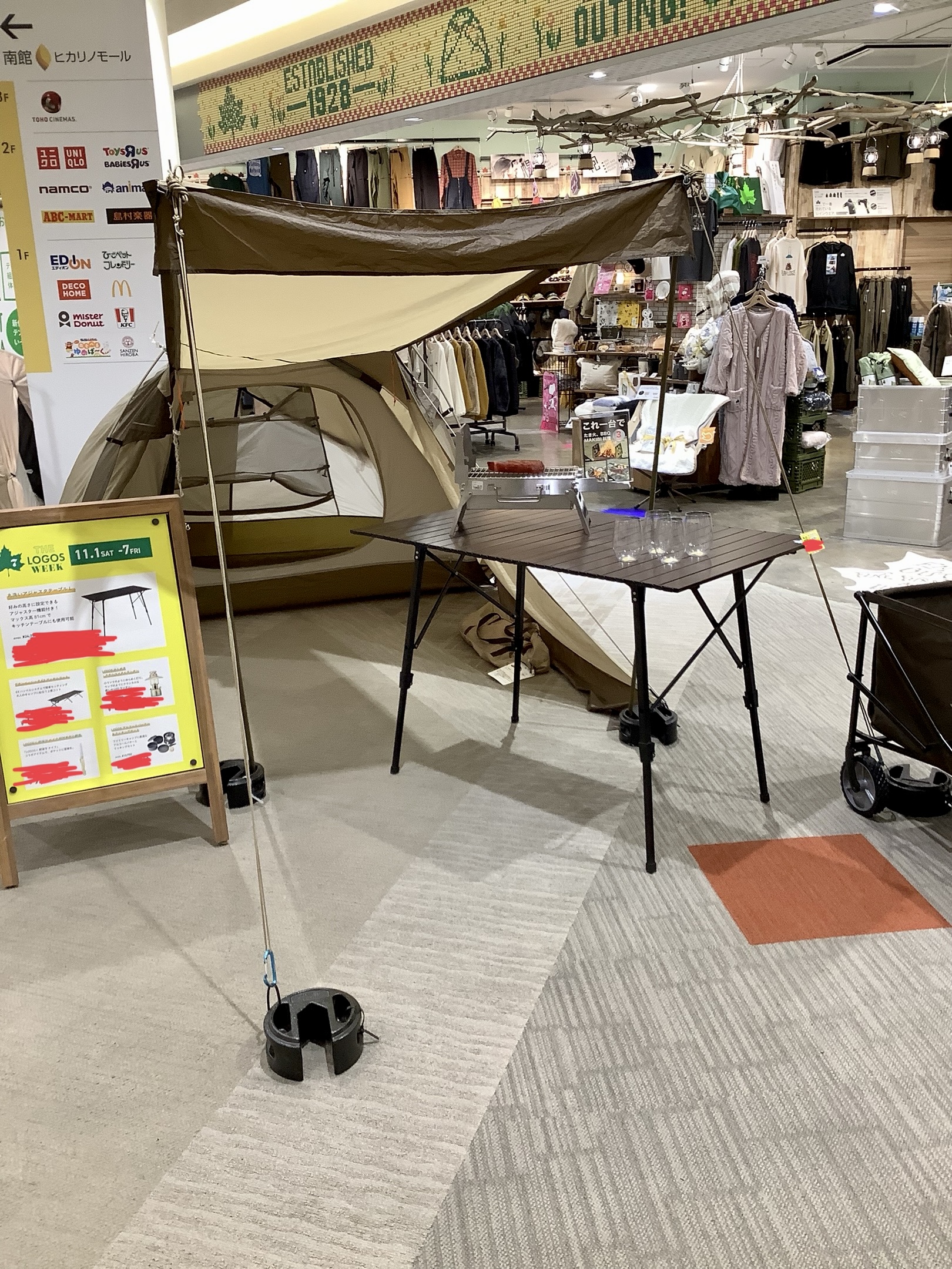 商業施設で展開するロゴスプロデュース空間。キャンプギアを体験しながらアウトドア気分を味わえます。ロゴスの世界観の中、家族みんなで楽しめる空間です。
