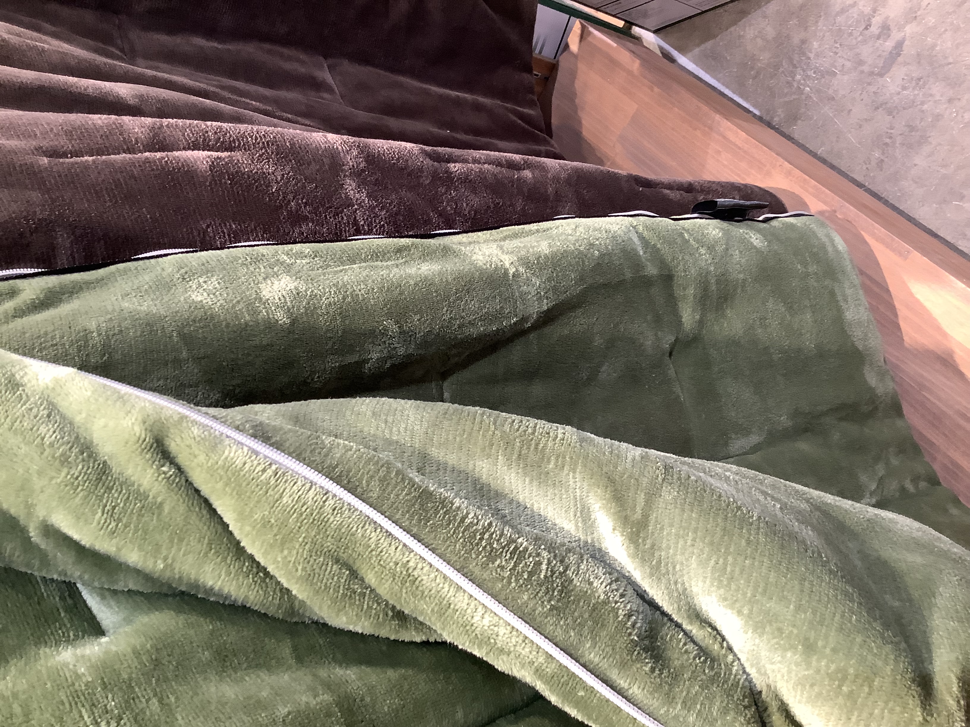 ジッパーを開けてブランケットのようにお部屋で使っても暖かいです。